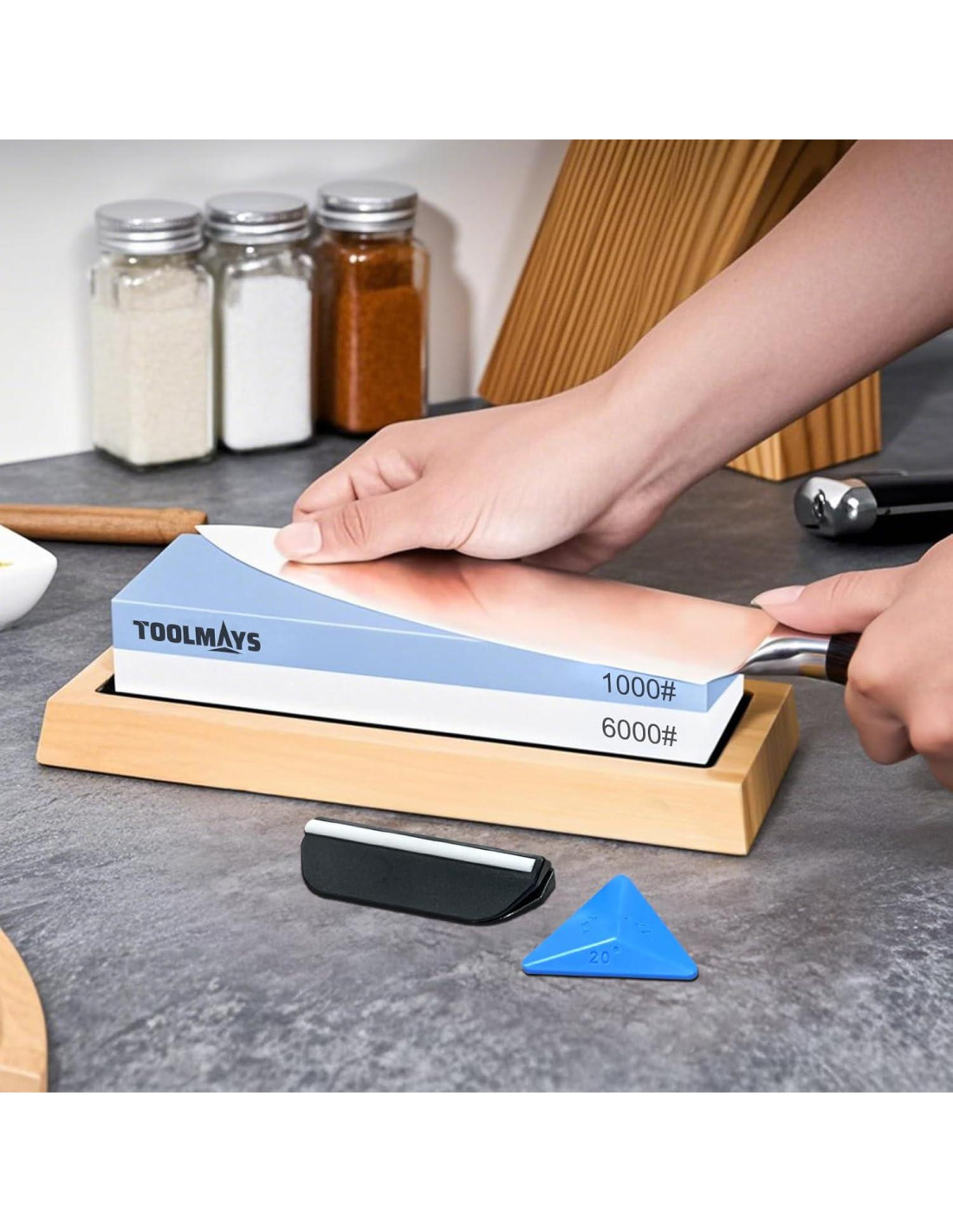 - Calidad Premium: Nuestro kit de afilado de cuchillos de grado profesional está elaborado con materiales de calidad premium. Las piedras de afilado de doble cara de alta calidad (1000# y 6000#) garantizan un rendimiento de corte superior, eliminando eficazmente el daño de la hoja y garantizando un borde afilado profesional. También incluimos un pulidor de piedra de afilar de bonificación (200#/320#) para restaurar la planitud de los bordes desgastados, cubriendo todos los pasos desde la reparación rápida hasta el pulido fino.