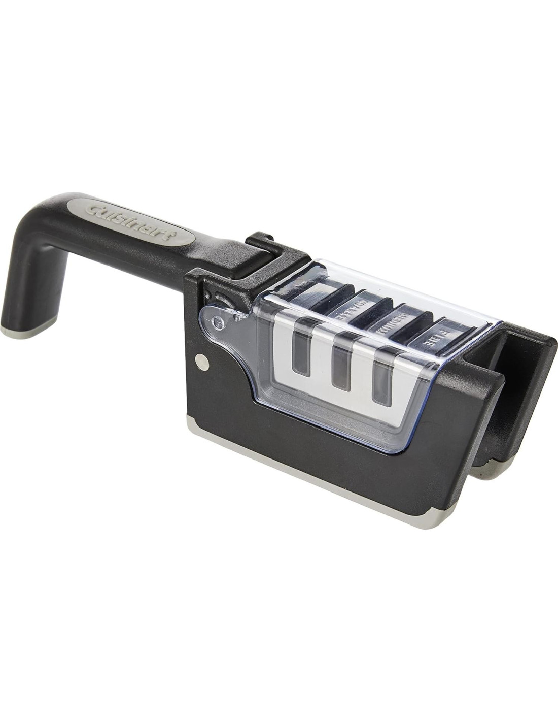 Mantén las hojas de tus cuchillos tan afiladas como el día que llegaron con el afilador de cuchillos plegable de 3 ranuras. El mango se pliega, lo que facilita su almacenamiento.