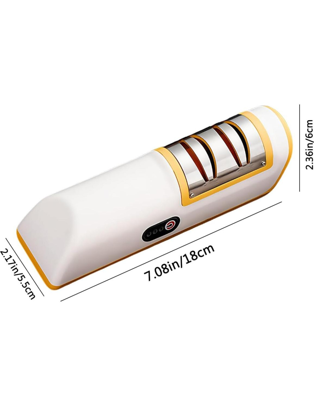 - [Afilador de cuchillos profesional para el hogar] Este afilador eléctrico de cuchillos está diseñado para uso en el hogar y la cocina, puede afilar sus cuchillos y tijeras desafilados en poco tiempo, brindándole una buena experiencia de afilado. Es más conveniente y rápido usar la herramienta de afilado de cuchillos, ahorrando su tiempo para afilar cuchillos.