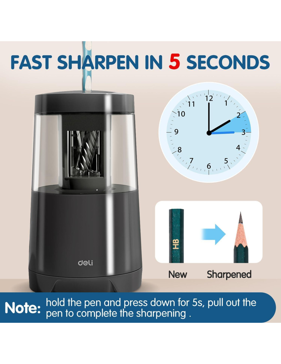 - Afilador de Lápices Duradero Como un afilador de lápices mecánico, viene con cuchillas en espiral de alta resistencia y larga duración que pueden afilar lápices más de 5,000 veces. Es más rápido y duradero que los afiladores eléctricos ordinarios.