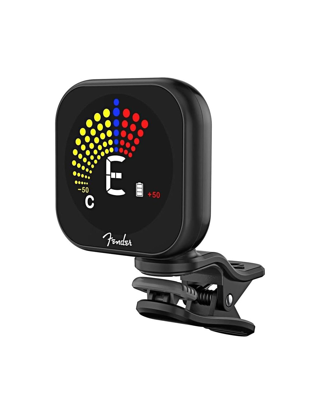 - Un afinador de guitarra recargable Fender Flash 2.0 negro para usar como afinador de guitarra eléctrica, afinador de guitarra acústica o afinador de guitarra bajo; viene con batería y cable micro USB