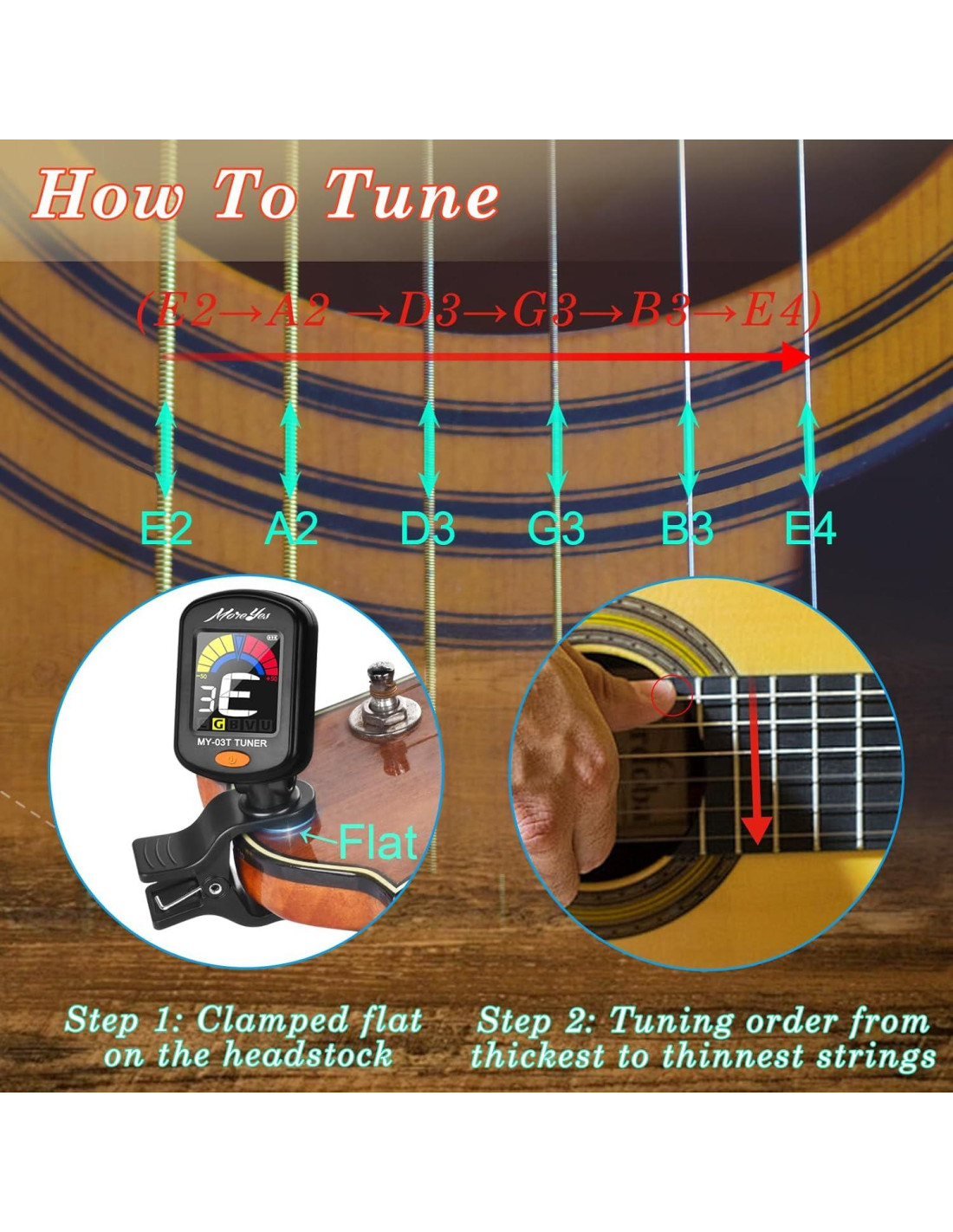 - Pantalla a Color Completa y Fácil de Leer: Este afinador de guitarra te permite llegar a la afinación que deseas de manera rápida y sin esfuerzo. La aguja de afinación fácil de leer y la pantalla retroiluminada indican cuán cerca está tu nota de la afinación; La gran pantalla a color completa, lo que hace que sea muy fácil de leer incluso en un entorno oscuro.