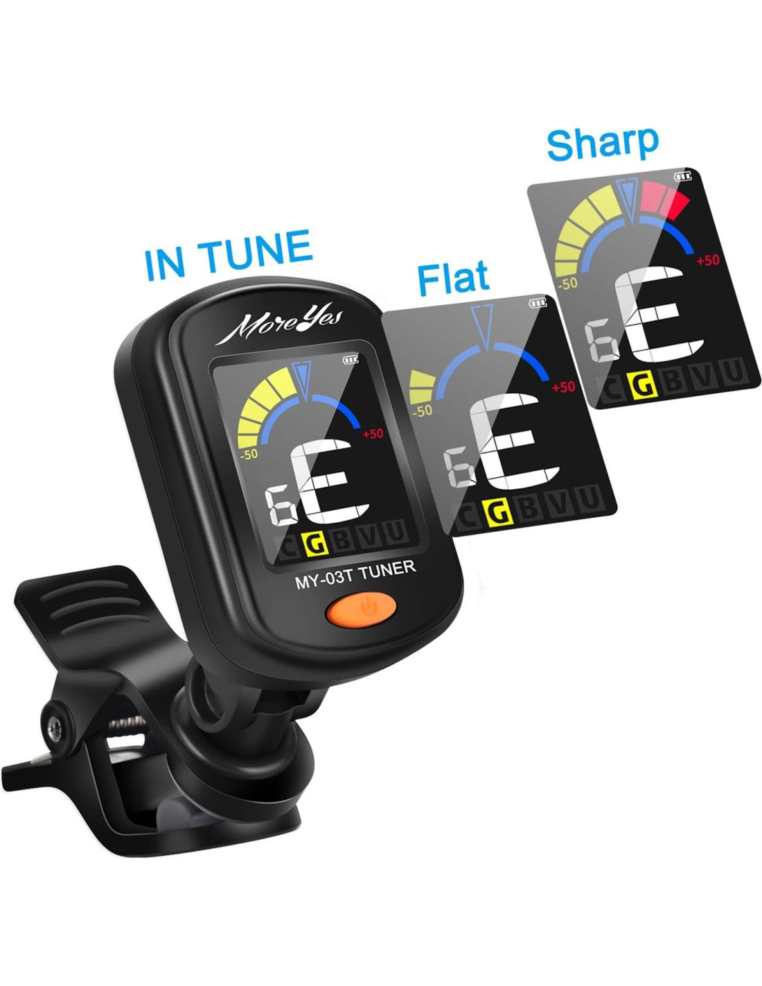 - Afinación Precisa y Rápida: Afina tu guitarra o bajo con facilidad con el Afinador MOREYES. Gran precisión con un amplio rango de calibración (435-450Hz) garantiza un rendimiento preciso, la calibración también es ajustable; 5 Modos de Afinación (cromático, guitarra, bajo, violín, ukelele) para cubrir una amplia gama de instrumentos. Afinación Perfecta en Mandolina, Banjo y Casi Cualquier Instrumento de Cuerda Acústico o Eléctrico.