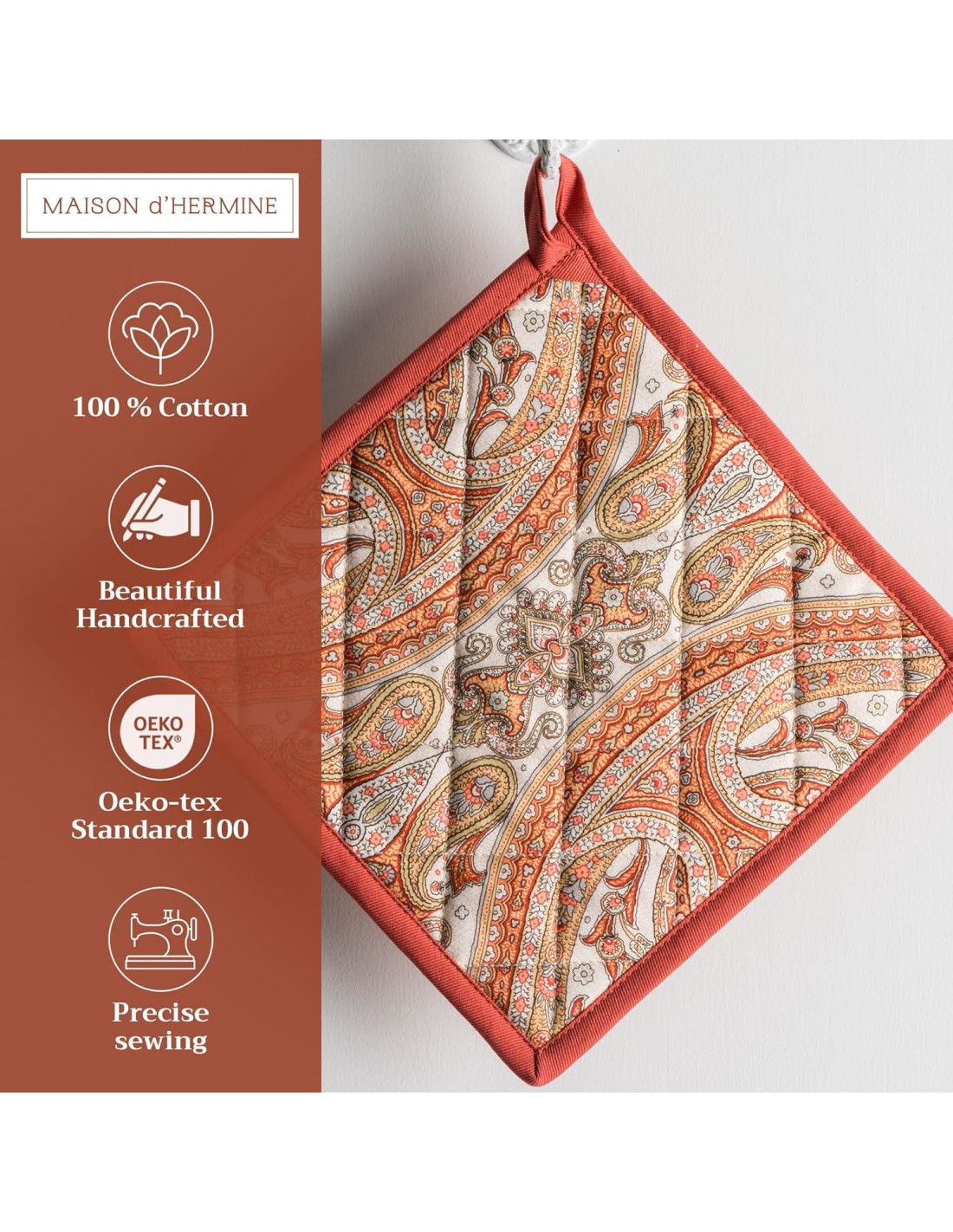 - El paquete incluye: 2 agarraderas que miden 20 cm x 20 cm. Ideal como almohadilla caliente para platos, cafeteras, sartenes de hierro fundido o utensilios de cocina. Diseñado en Europa y fabricado en India, combina estilo, función y comodidad en un esencial diario de cocina