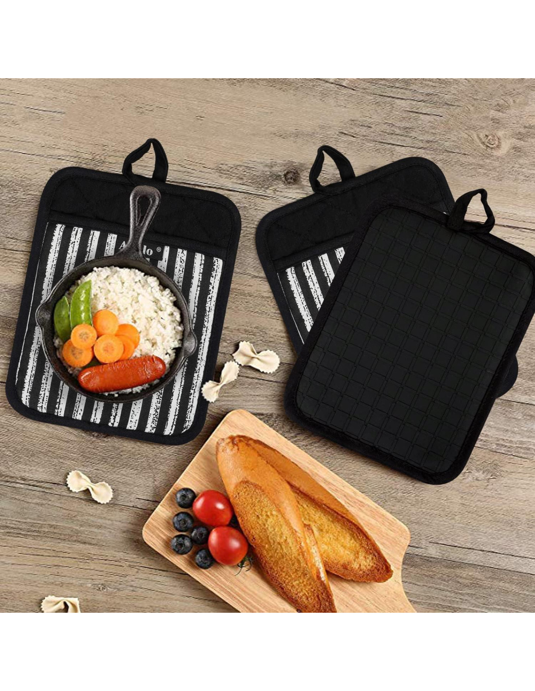 - 1.TAMAÑO PERFECTO Y DISEÑO ÚNICO: este paquete de 3 agarraderas rectangulares de 7" x 9" (17.8 cm x 22.9 cm), diferentes colores para elegir para decorar tu cocina. También funcionan como almohadillas calientes y salvamanteles para platos calientes para proteger tu mostrador o mesa. Perfecto para uso diario y coordinan bien con tu hogar y cocina.