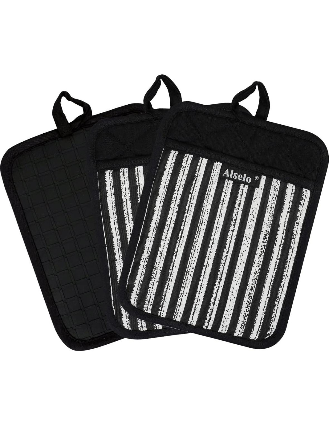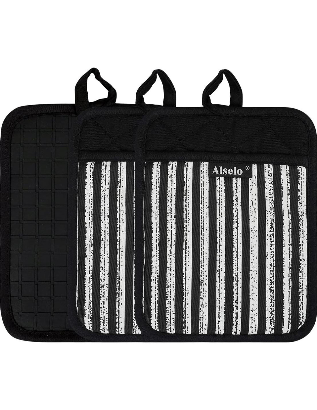 - 4.ESENCIALES DE COCINA PARA COCINEROS / PASTELEROS: Las agarraderas de Alselo con bolsillos son ideales para todas tus necesidades de cocina, horneado, asado y horno. Haz que tu tiempo de cocina sea fácil y seguro.
