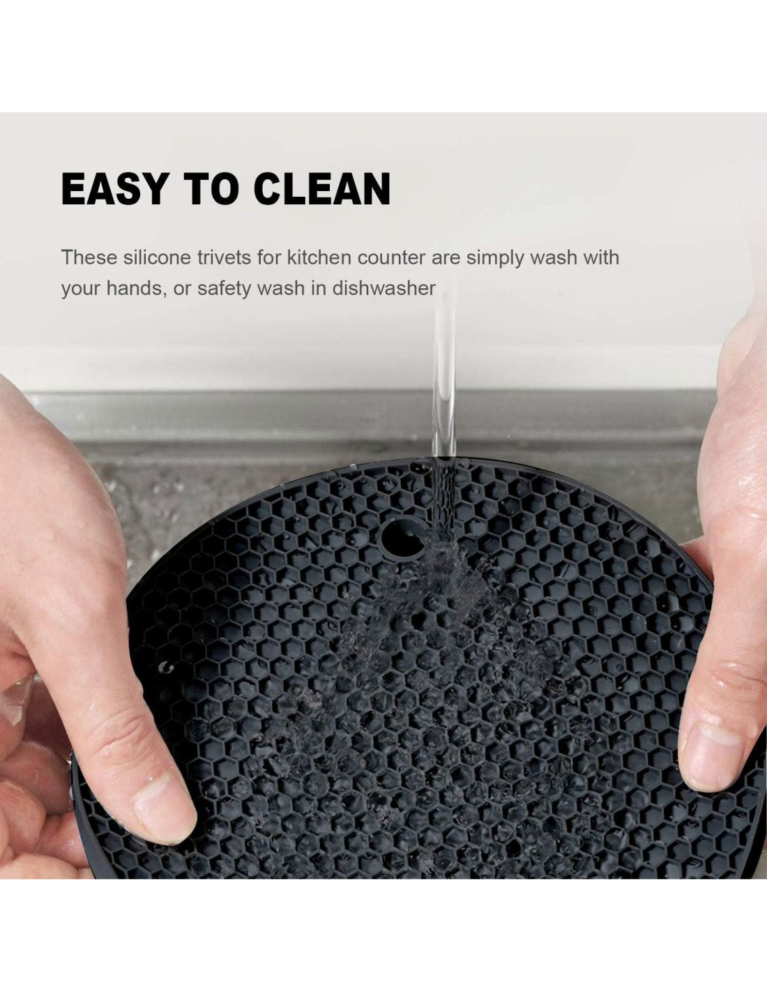 - Fácil de Limpiar y Almacenar: La alfombrilla de trivet de silicona se puede lavar simplemente a mano o meter en el lavavajillas, se puede almacenar cómodamente dentro de un cajón o colgarlas en un gancho cuando no están en uso.