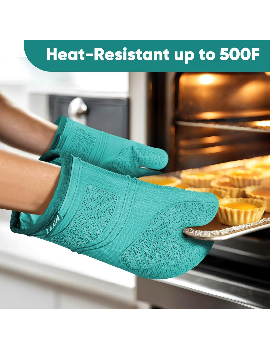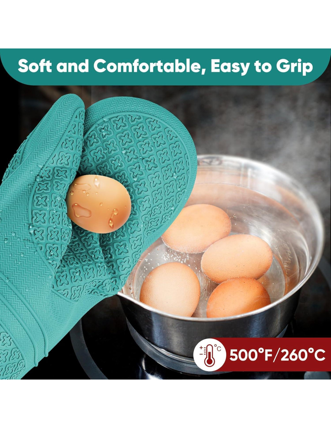 - [Manoplas para Horno Resistentes al Calor] Manoplas de silicona hechas de silicona de grado alimenticio, estas manoplas para horno ofrecen una sensación suave y cómoda, manoplas resistentes al calor 260C (500F), proporcionando una excelente protección en la parrilla, estufa o en el horno.