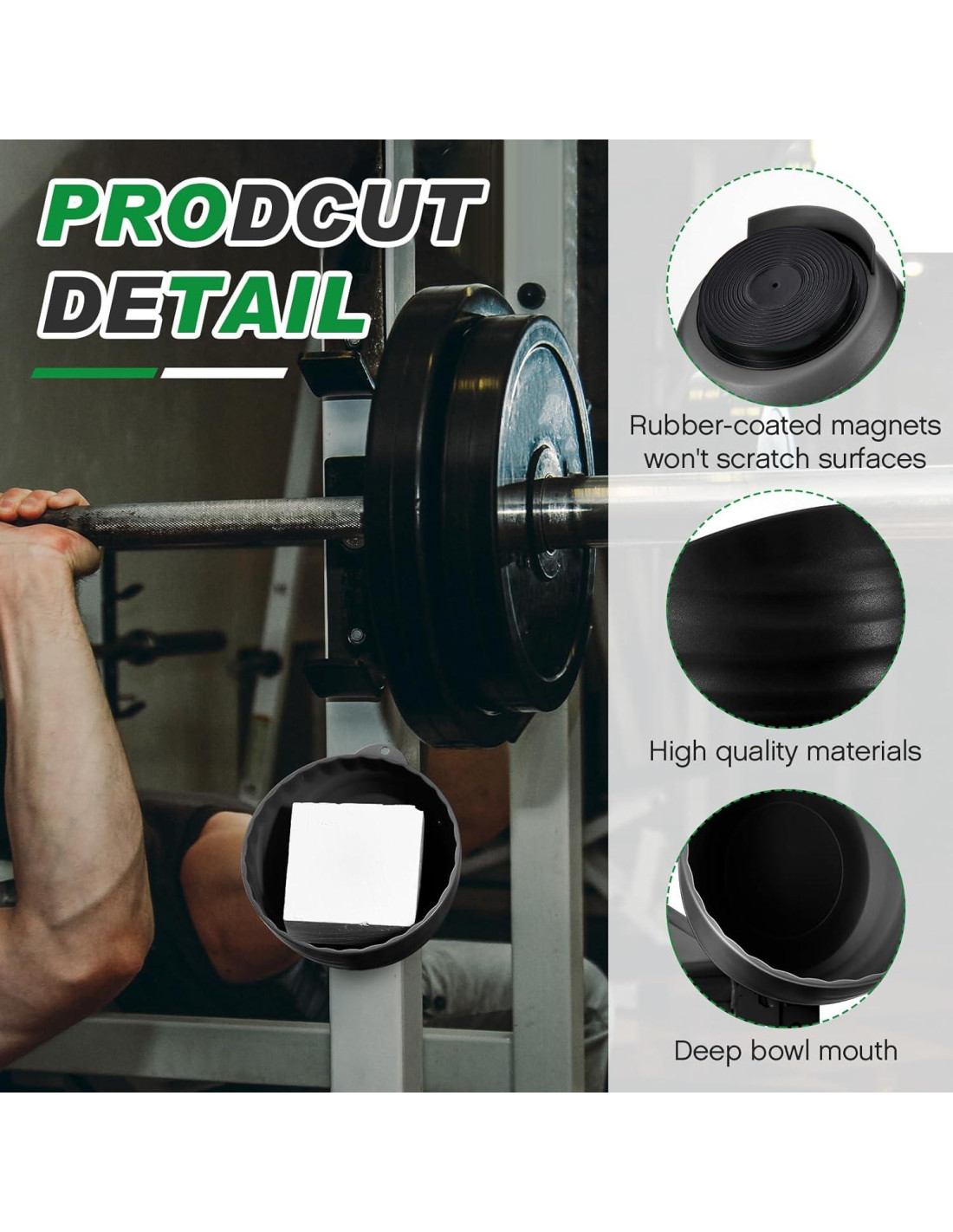 - Socio ideal para mantener el gimnasio ordenado: el soporte magnético para tiza negra ayuda a mantener tu gimnasio limpio y ordenado al eliminar el desorden causado por el uso de tiza durante los entrenamientos; El tazón magnético de plástico asegura que la tiza se mantenga donde pertenece y no termine esparcida por el suelo del gimnasio, manteniendo un entorno de entrenamiento limpio.