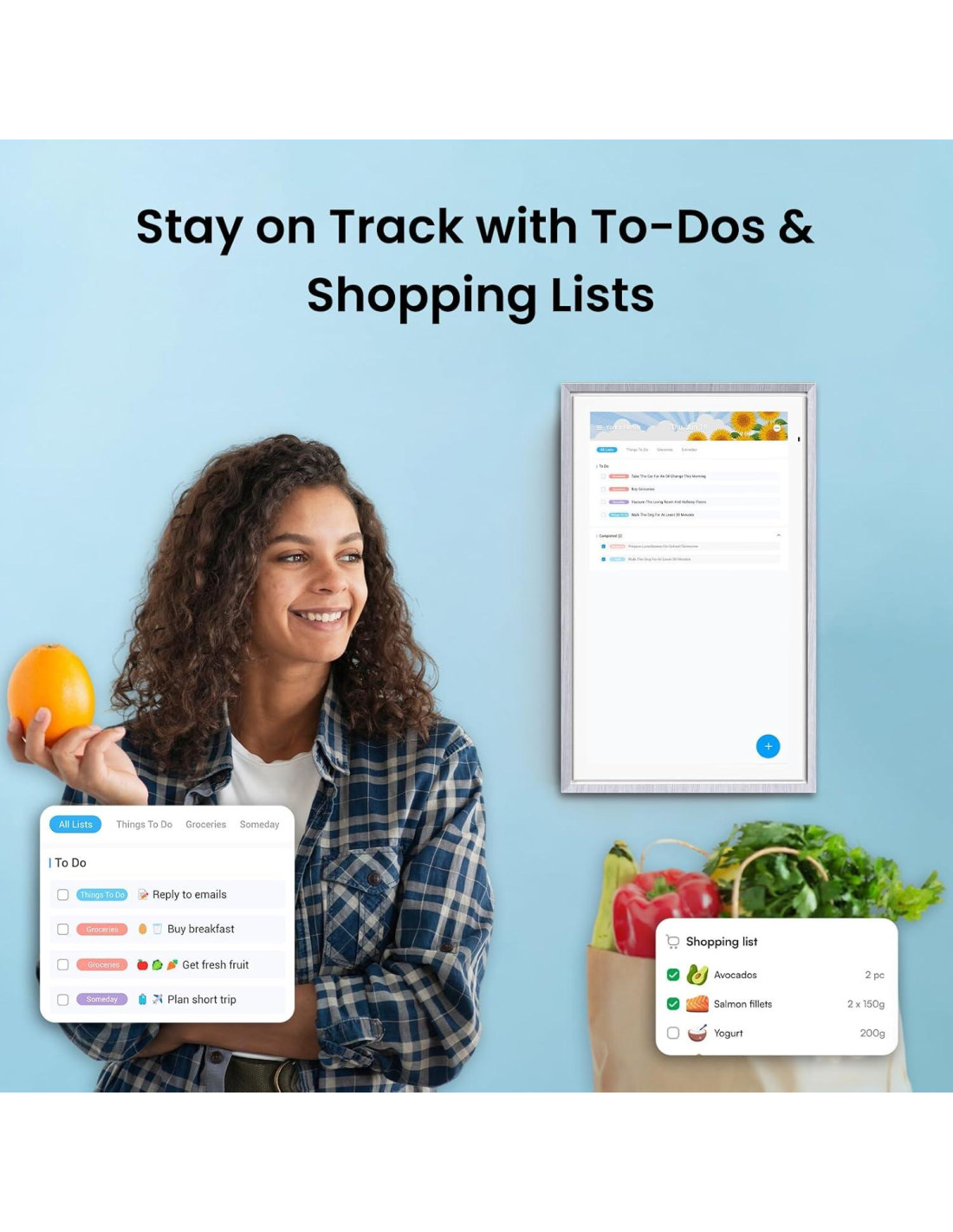 - Personaliza tu Tablero de Widgets - eCalendario más inteligente: Agrega y organiza los widgets que necesitas: calendario, tareas, comidas, clima, timbre, controles de música, acciones, y más. Personaliza tus tableros para un centro familiar inteligente. Ya sea sincronizando calendarios o resolviendo problemas, nuestro equipo de soporte experto está disponible las 24 horas para asistirte.