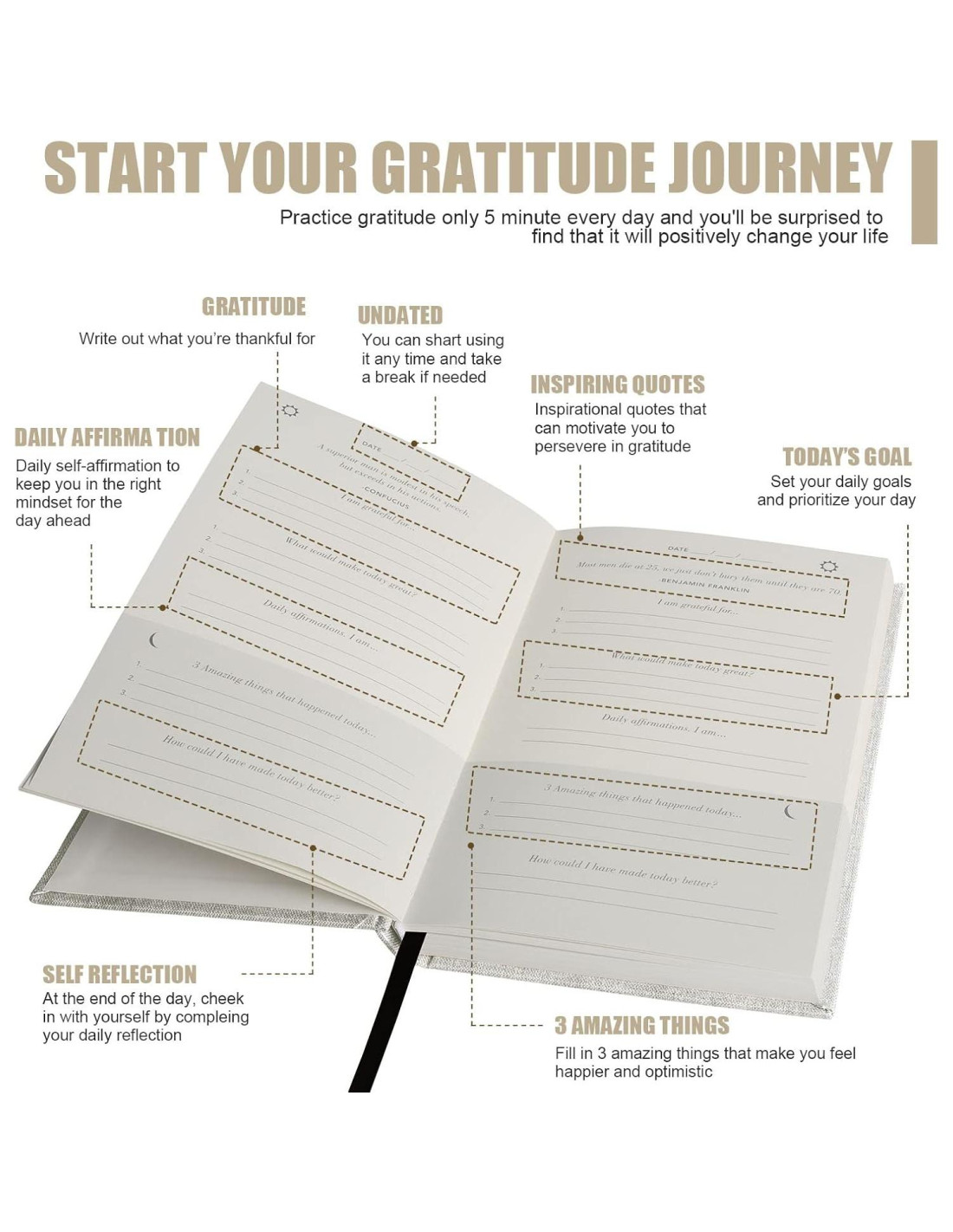 - Cómo Usar: El registro diario es suficiente para seis meses, diseñado para un rendimiento positivo y aumentar la confianza, promueve hábitos diarios beneficiosos para inspirar gratitud. Incluye: desafíos semanales, gratitud, aspectos destacados diarios, citas inspiradoras, afirmaciones diarias y autorreflexión.