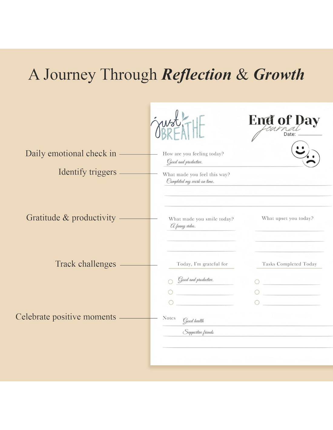 Deja ir el desorden mental y reconéctate contigo mismo a través de indicaciones guiadas diseñadas para traer claridad y calma. Ya sea utilizado como un diario de gratitud diario, un diario de claridad, o un espacio tranquilo para procesar emociones, este cuaderno encuadernado en espiral apoya mejores hábitos cotidianos. Una herramienta reflexiva para mujeres y adolescentes enfocada en el bienestar, el crecimiento emocional y la superación personal en 2025 y más allá. Este diario de fin de día es una herramienta guiada de 28 semanas para hombres, mujeres y adolescentes que buscan crecimiento personal a través de la reflexión consciente y la intención diaria. Con indicaciones cuidadosamente elaboradas, combina gratitud y cuidado personal para apoyar la claridad mental y el bienestar emocional. Ya sea que estés escribiendo en un diario por disciplina, propósito o paz mental, este diario espiral sin fecha te ayuda a construir un mejor día a día. Este diario encuadernado en espiral está diseñado para ayudarte a liberar el estrés, ganar claridad y construir resiliencia emocional. Ya sea que estés escribiendo a través de la ansiedad, rastreando estados de ánimo diarios, o encontrando espacio para dejar ir, cada indicación fomenta una reflexión más profunda y una visión personal. Una herramienta de apoyo para cualquiera que navegue por el crecimiento, el bienestar o la sanación - una página reflexiva a la vez.