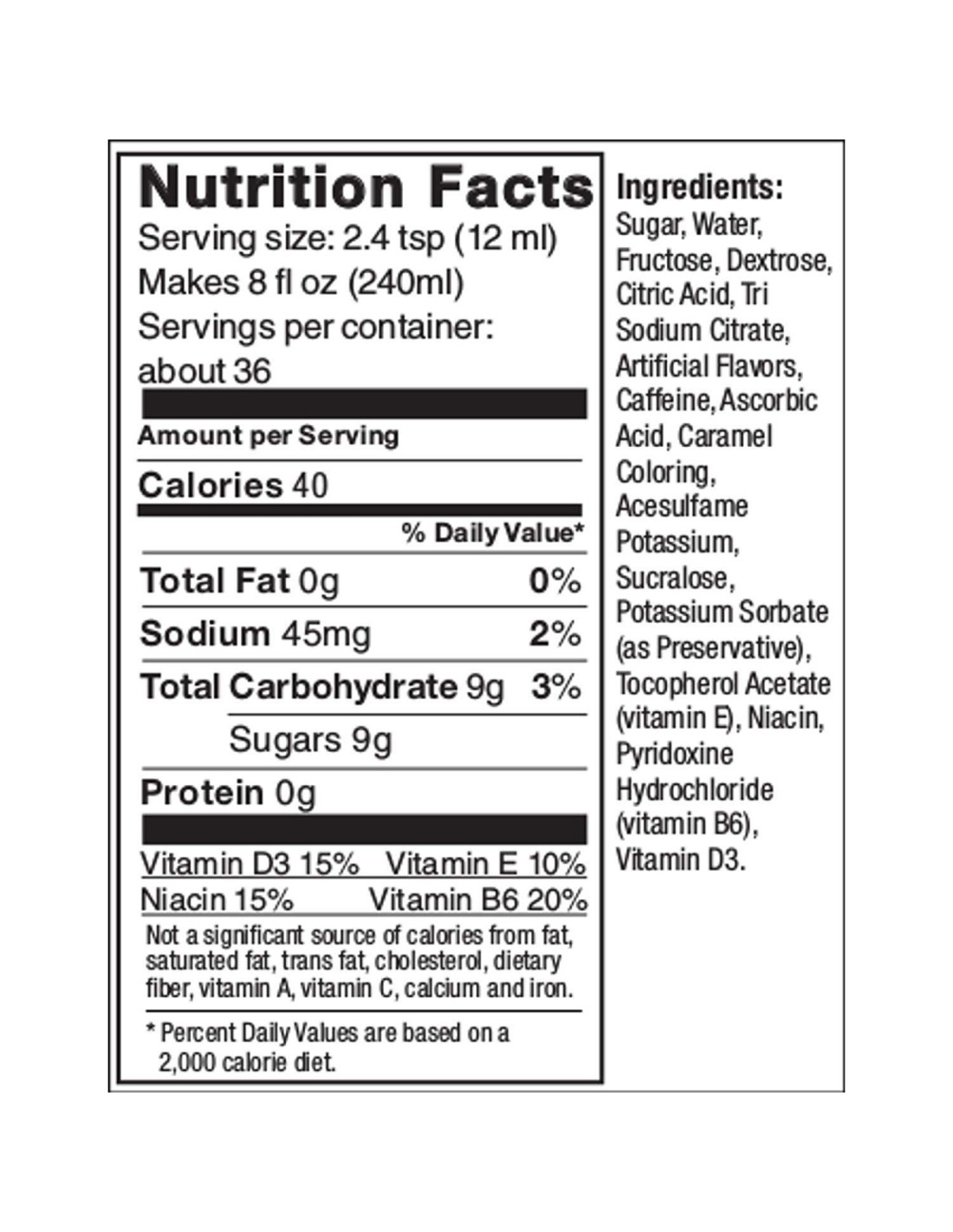 - Sin jarabe de maíz de alta fructosa ni aspartame