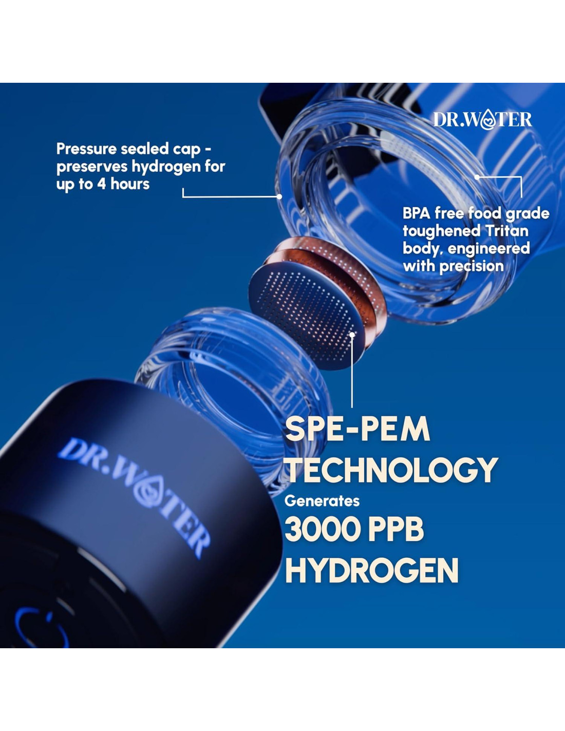 - 4. Botella de agua hidro de precisión: Esta botella de agua de hidrógeno diseñada profesionalmente es perfecta para la hidratación diaria, mezcla de suplementos y creación de bebidas enriquecidas con hidrógeno en su generoso contenedor de capacidad, fabricado con Tritan de alta calidad; la operación de tres pasos asegura una dosificación precisa: llenar, presionar y esperar, y disfrutar de una pura concentración de hidrógeno.