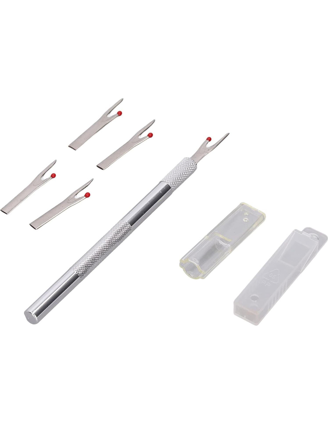 - Mango de Agarre Cómodo: Las herramientas desgarradoras de costuras tienen mangos diseñados para el contacto con la mano. Los removedores de puntos y cortadores de hilo apoyan el control durante las tareas de remoción de costuras a través de su forma. Los desgarradores de costuras ayudan a mantener el agarre con su textura superficial