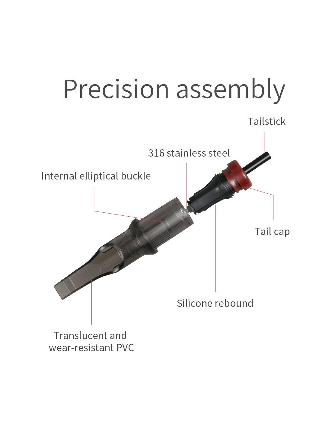 - Agujas hechas de acero inoxidable grado médico 316. Compatible con todas las máquinas de bolígrafo estándar y empuñaduras de cartuchos