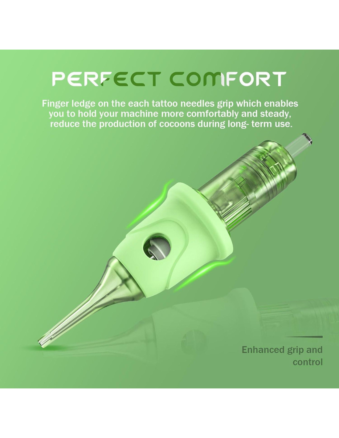 - Agujas de Cartucho de Tatuaje con Ledge para Dedos POPUPMU innovadoras cartuchos profesionales con ledge para dedos, Aumenta el extremo del barril de las agujas de tatuaje de la punta, teniendo un mejor agarre durante el trabajo de tatuaje, incluso durante tatuajes prolongados, no harán que tus dedos se sientan cansados. Optimizado para artistas, el agarre de silicona suave reduce significativamente la fatiga.