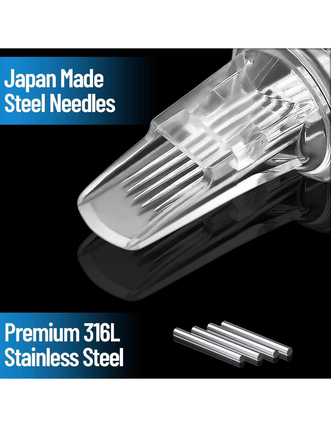 - Material Superior - Este cartucho de aguja para tatuar está hecho de acero inoxidable 316 profesional y plástico de alta calidad. Bordes suaves eliminan trauma adicional.