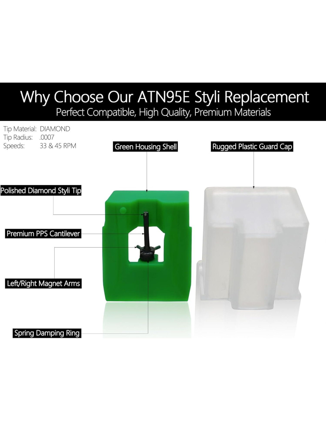- Reemplazo para Aguja Original ATN95E: Nuestra aguja atn95e fue especialmente diseñada para el cartucho AT95E. Además, este reemplazo de aguja atn95e es compatible con cientos de modelos de cartuchos de tocadiscos.