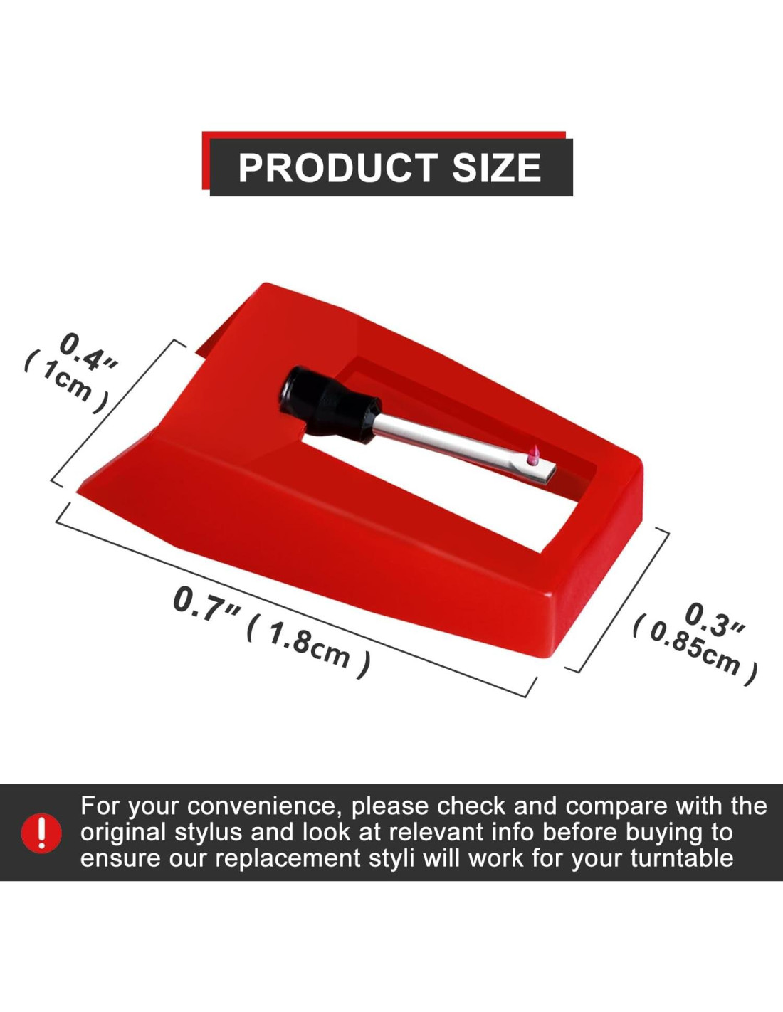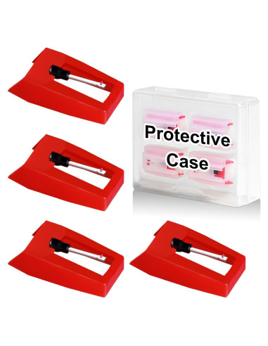 - Embalaje Confiable: El paquete vendrá con 4 pcs de agujas para tocadiscos, cada tamaño: 0.7in (1.78 cm) x 0.4in (1.02 cm), cada una con tapa protectora y esponja, todo empaquetado en una caja de plástico para almacenamiento.