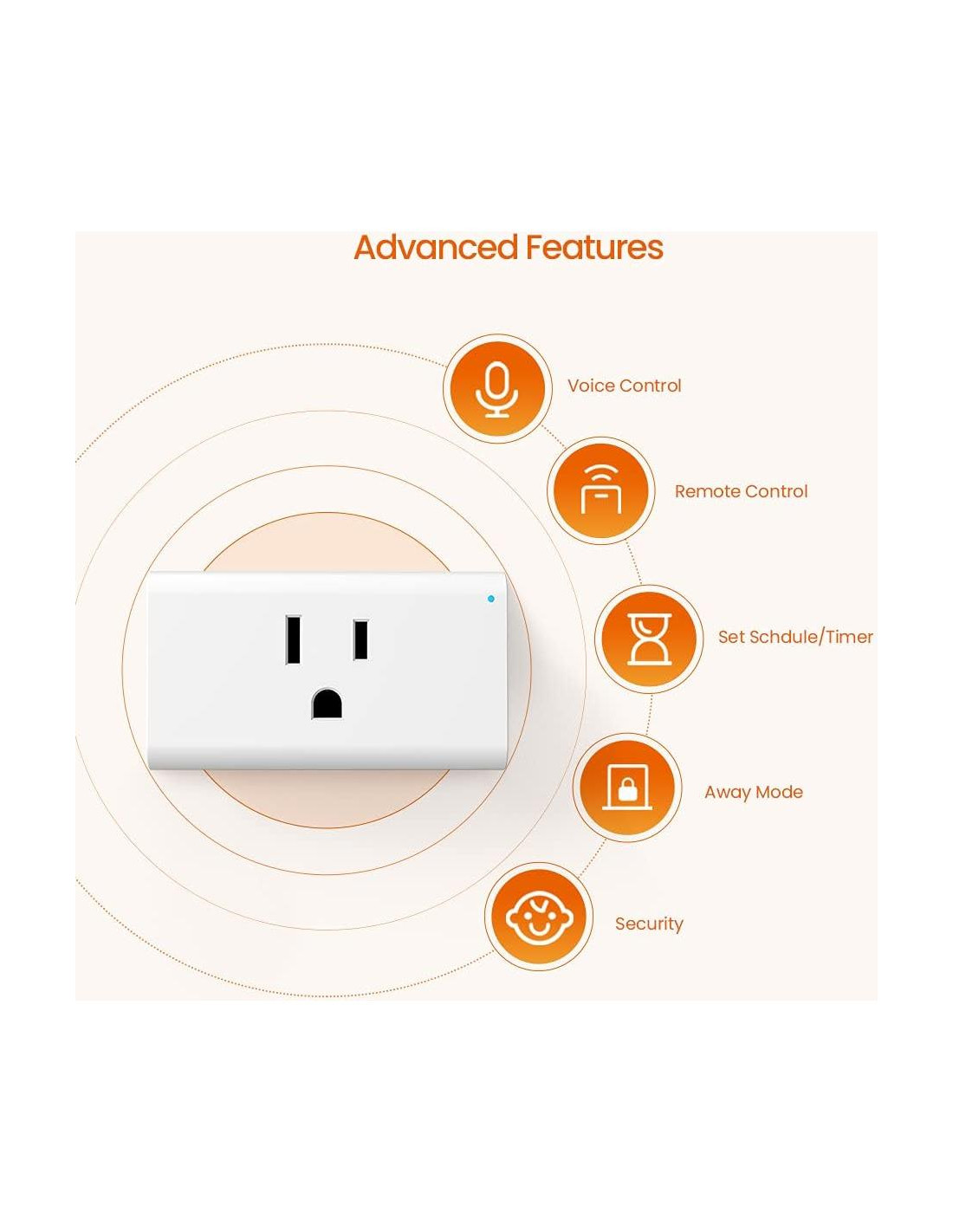 - Control por Voz y Remoto: Compatible con Amazon Alexa y Asistente de Google. Dé una orden de voz a Alexa o Asistente de Google para encender/apagar el enchufe WiFi.