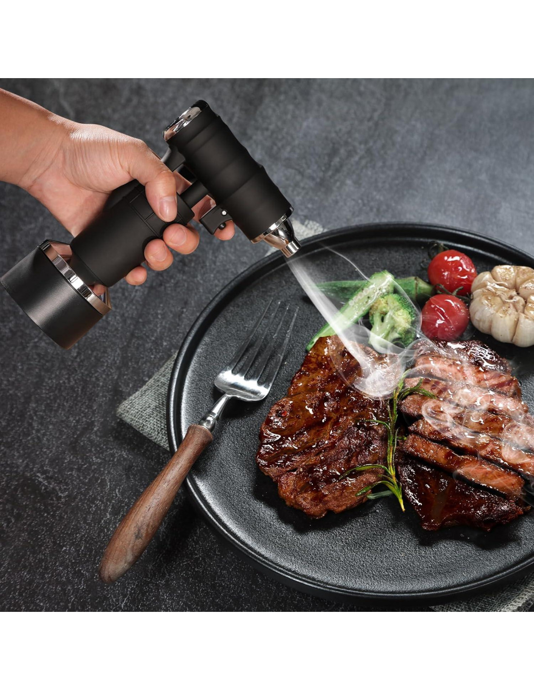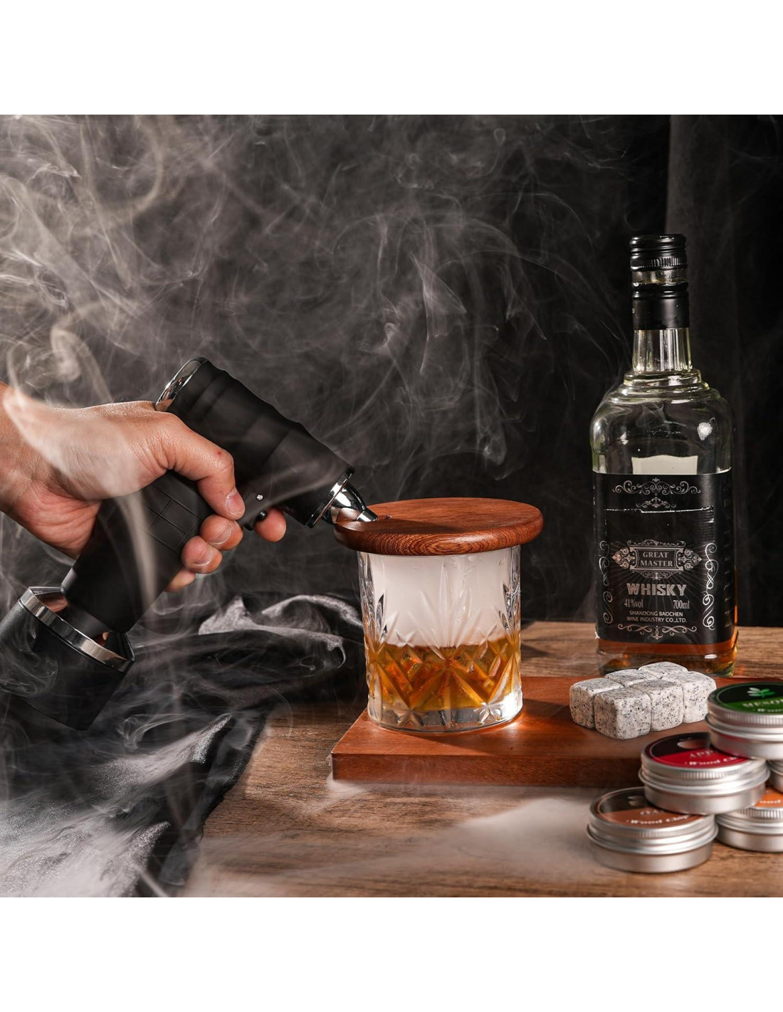 - KIT DE INFUSOR AHUMADOR DE USO MÚLTIPLE DIY: A diferencia del ahumador de cócteles tradicional, el viejo ahumador que consiste en una base de madera y un mechero, el viejo ahumador solo puede usarse para ahumar bebidas o cócteles y whiskey colocando la base del ahumador sobre el vaso, lo cual es aplicable a un solo escenario. Nuestro kit de ahumador es portátil, no solo ahuma bebidas y whiskey o cócteles, también ahuma alimentos, añadiendo un ligero sabor ahumado a tus alimentos en menos tiempo.