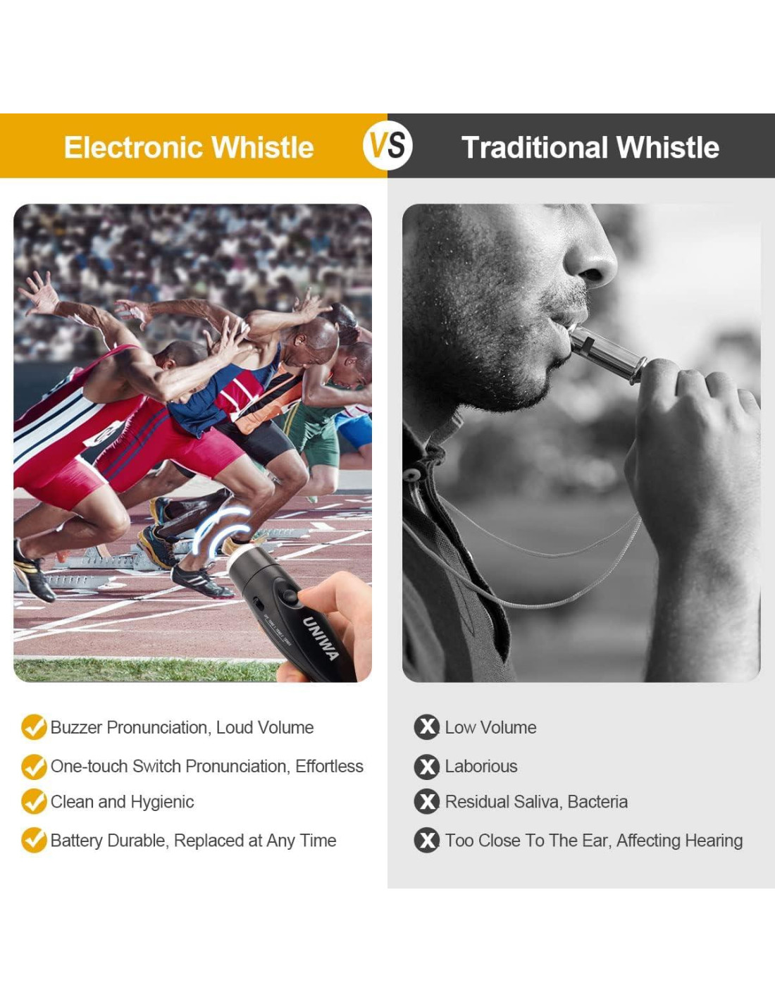 - Silbatos Electrónicos de 3 Tonos El silbato electrónico puede evitar el contacto bucal. Tres tonos distintos de silbatos personalizados para su selección, puede elegir el mejor sonido para su demanda, los silbatos eléctricos de mano con cordón son un gran regalo para maestros, árbitros y entrenadores, adecuados para todos los eventos deportivos, entrenamiento de mascotas, camping al aire libre, situaciones de emergencia