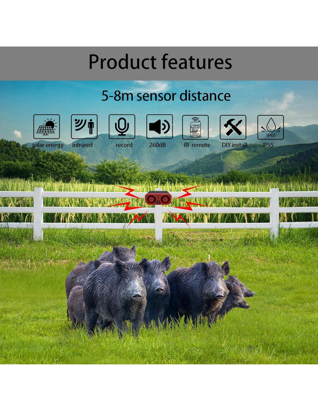 - Sensor de Alarma de Movimiento Solar - Seguridad Exterior con Ruidos Fuertes de 130dB y Sonidos Personalizados, ahuyenta efectivamente a los intrusos, protegiendo tu granja, estanque, huerto y más de daños.