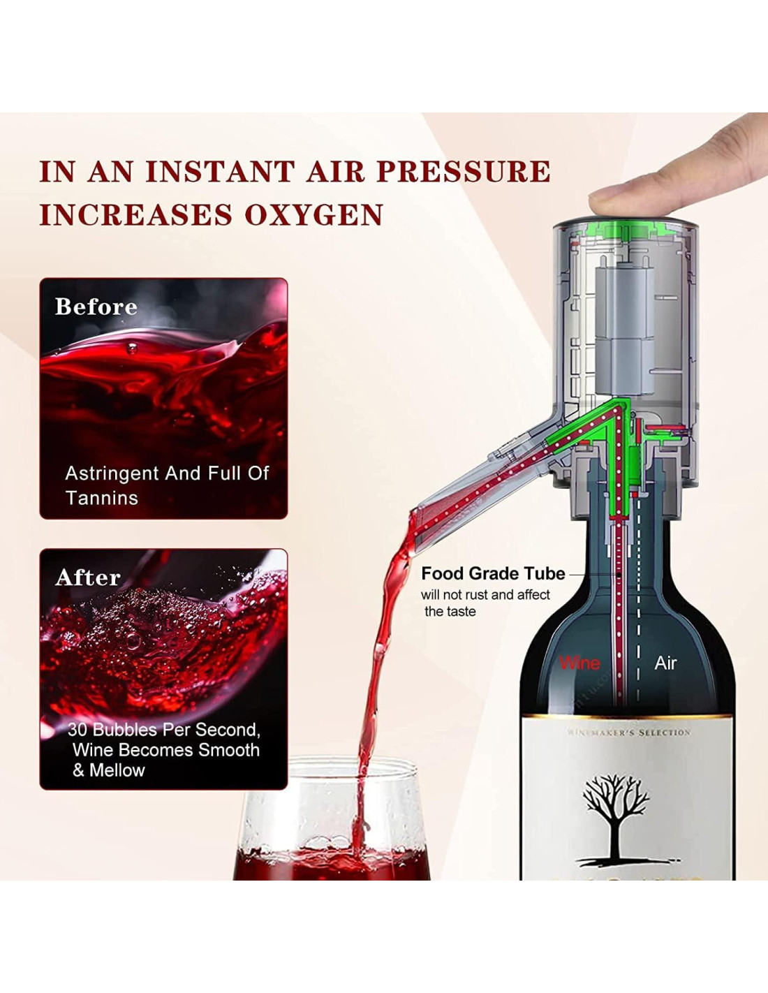 - [Inflado rápido y simple] Aerador de vino eléctrico con un simple toque de un botón, el vino perfectamente aireado se entrega directamente a tu copa. Suaviza los taninos y enriquece tu vino para un sabor lujoso. Es el mejor regalo para los amantes del vino.