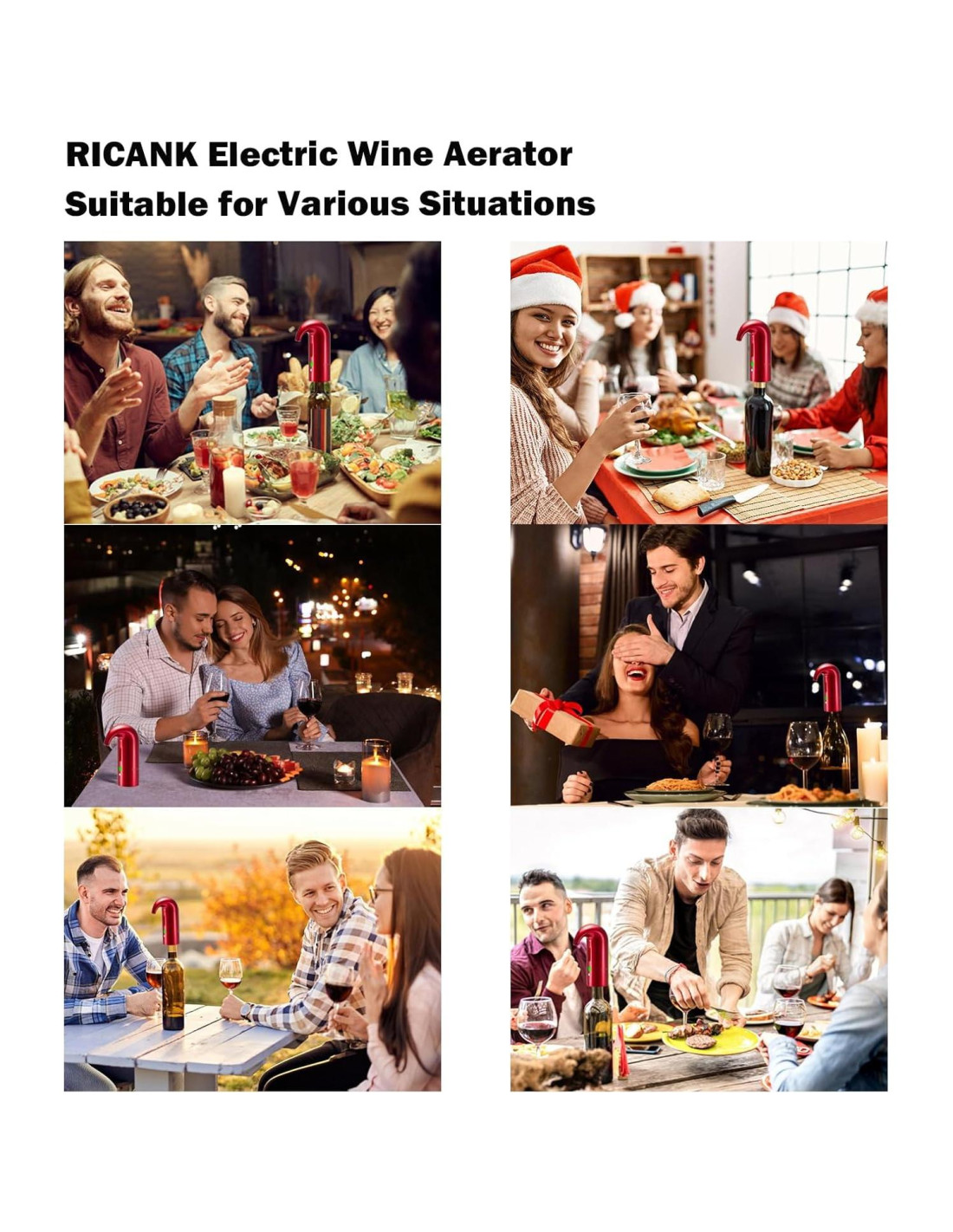 El aerador de vino eléctrico RICANK decanta el vino aumentando la alta presión de oxígeno, luz roja y magnética de tres maneras. Es más rápido y efectivo que los decantadores de vino tradicionales.