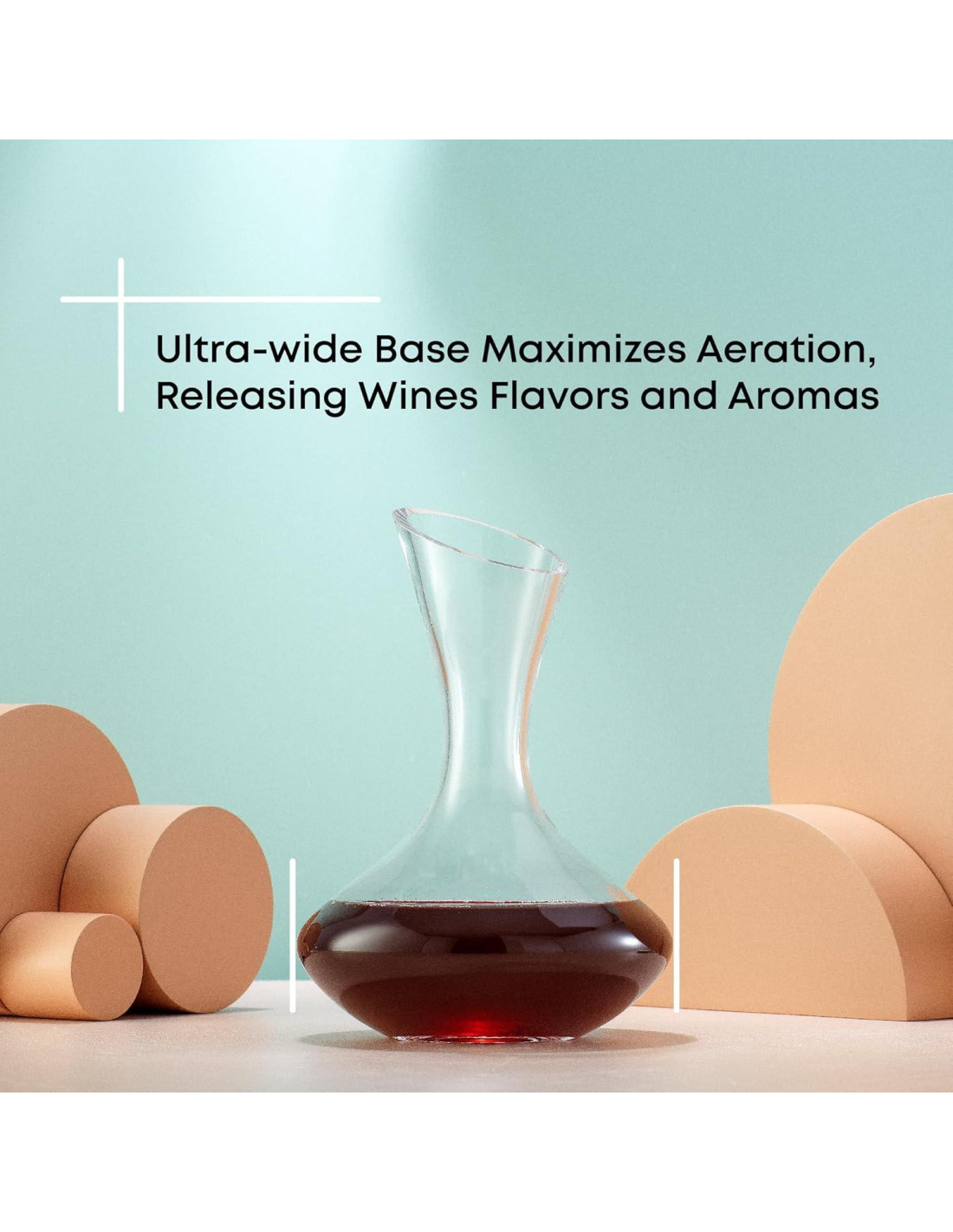 - Tamaño Óptimo: Con una capacidad de 1200ml o 40oz, gran área de base y un pico inclinado de fácil vertido, este decantador de vino tiene una capacidad óptima para airear tu tinto, liberando sabores y aromas deliciosos que consentirán tus papilas gustativas.