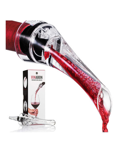- Aera Perfectamente el Vino al Servir - El ingenioso vertedor aerador de vino Vinabon 2 en 1 se adapta a botellas de vino con corcho, realzando el bouquet y aroma, elevando tu experiencia de vino con cada servicio.