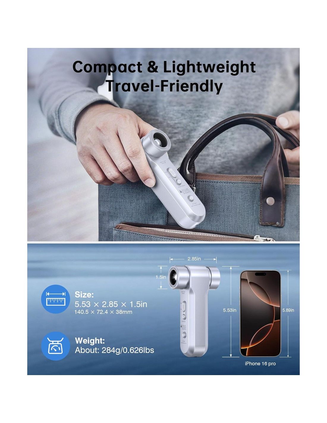 - Soplador de Aire Mini Compacto y Ligero: Midiendo solo 7.1 x 3.8 x 14 cm y pesando solo 0.27 kg. Y este limpiador inalámbrico tiene un acabado de aleación de aluminio y laca de piano ABS que proporciona un agarre cómodo y mayor durabilidad. Además, su estuche de embalaje incluido proporciona portabilidad y almacenamiento convenientes, haciéndolo ideal para limpieza en interiores, aventuras al aire libre y camping.