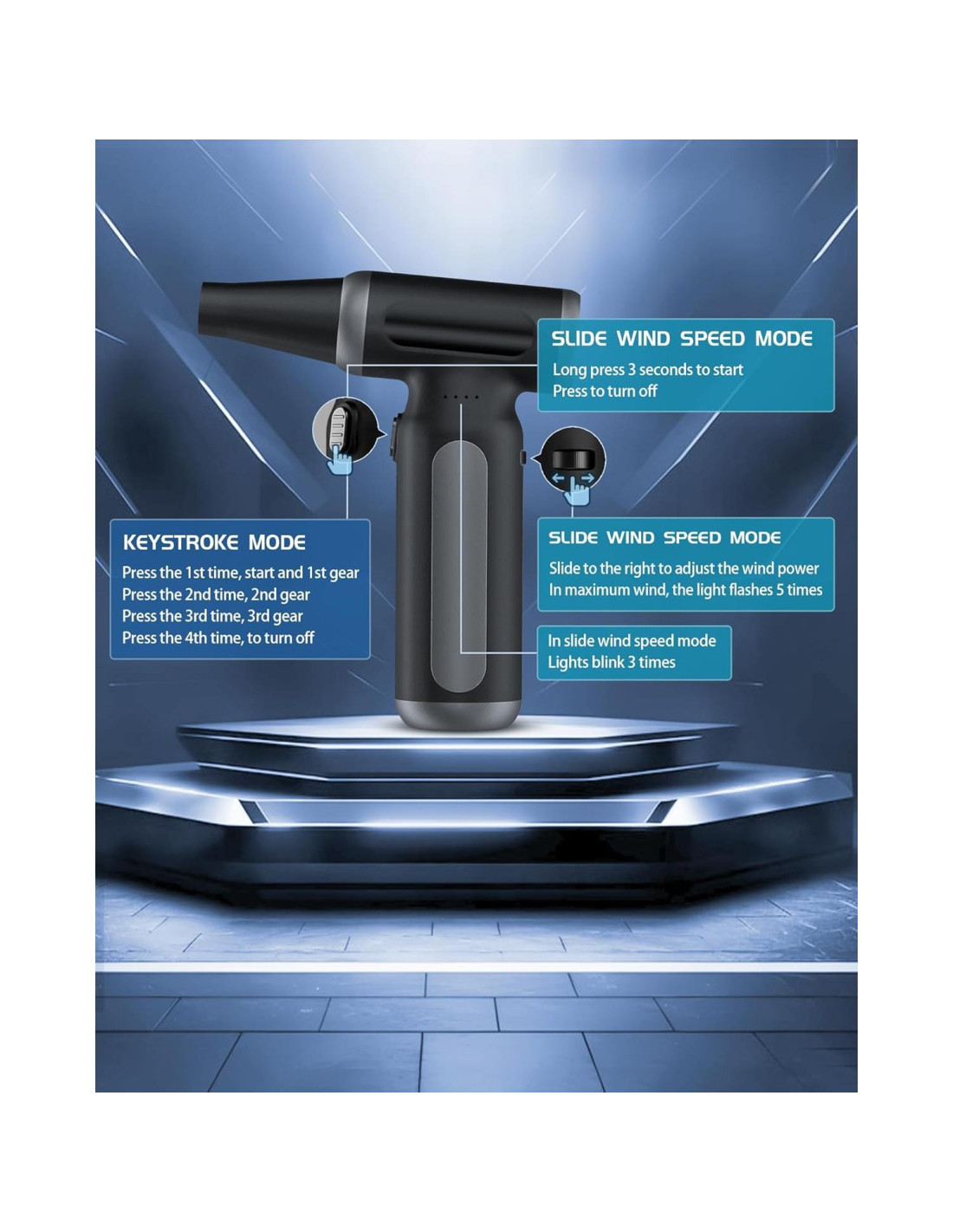 - Soplador de aire comprimido [Nuevo diseño funcional de modo deslizante] --En los sopladores de aire tradicionales, hay un modo de 3 velocidades. Este soplador de aire ha sido mejorado, con [modo de botón] y [modo deslizante] , puedes elegir libremente. Ventilador Jet [modo deslizante] deslizamiento suave, más conveniente y sensible de usar, eres libre de elegir la potencia del viento que necesitas. Ventilador soplador seco de PC para limpieza, ¡así de fácil!