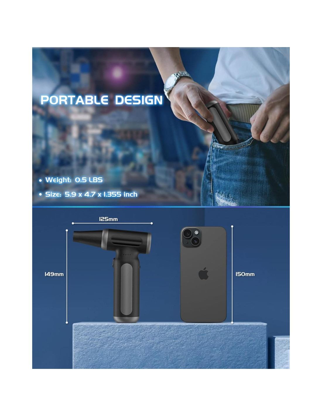 - Mini sopladores de aire [llevar en el bolsillo] --Como uso del ventilador turbo, solo tiene [1.35*5.9 pulgadas (3.43*14.99 cm)] , 0.5 lb (0.23 kg) el soplador de aire reemplaza la lata de aire comprimido. ¡Cabe en tu bolsillo sin estrés! Y el mini soplador adopta un diseño ergonómico. Se siente más cómodo, fácil de usar, en cualquier momento y lugar.