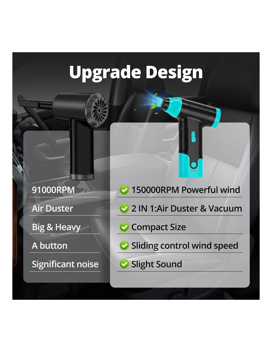 - Limpiador de aire eléctrico Anraye presenta un motor potente, alcanzando velocidades de hasta 150,000 RPM para una limpieza superior. El aire comprimido elimina eficazmente el polvo y los desechos de varias superficies.