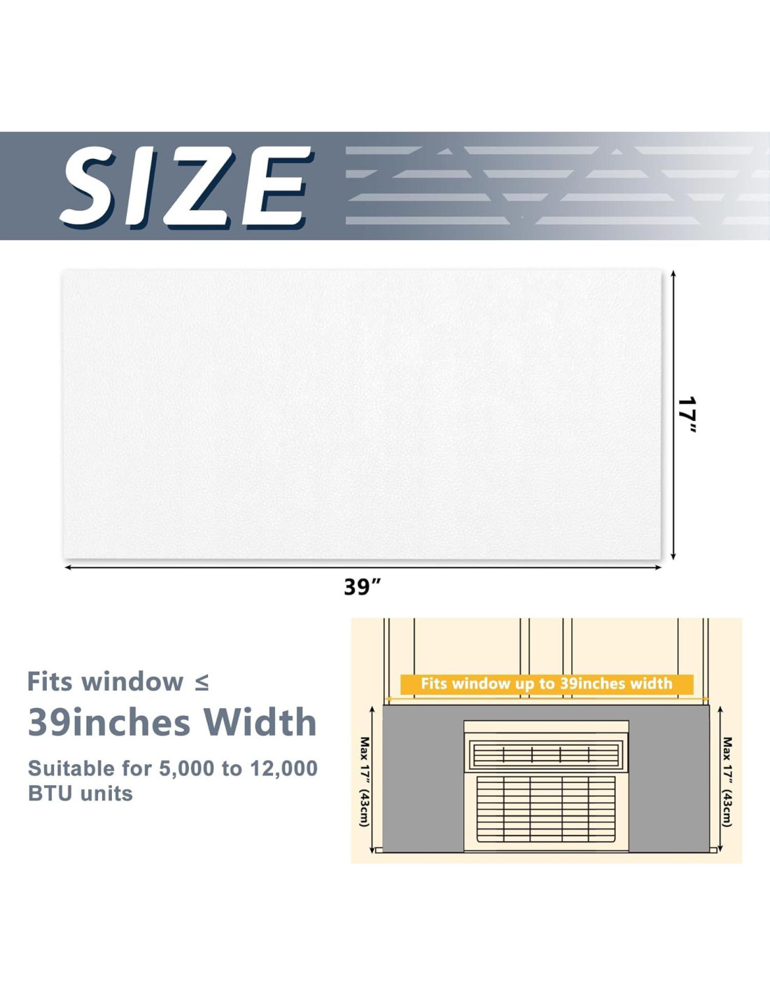 - Kit de aislamiento universal para aire acondicionado Los paneles laterales para aire acondicionado de ventana miden 99 cm x 43 cm. El panel de espuma para aire acondicionado se adapta universalmente a la mayoría de las unidades de aire acondicionado de ventana de 5000-12000 BTU y se adapta a ventanas de 99 cm de ancho o más pequeñas.
