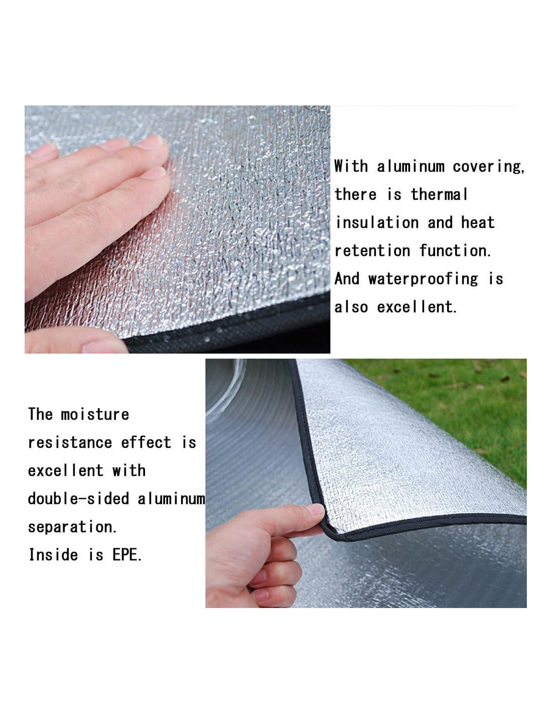 Esta manta exterior impermeable tiene aluminio por ambos lados y por dentro está hecha de EPE. Sirve como aislamiento térmico, protegiendo el saco de dormir del suelo frío. Ideal como alfombra para tienda. También se puede usar como manta térmica. Nuestra almohadilla de espuma tiene color: blanco plateado, bordes mate: negro y peso: aproximadamente 160g (4.23oz) con un grosor: aproximadamente 0.20 cm (0.078 pulgadas) muy delgada, longitud aproximadamente 198 cm (78 pulgadas), ancho: aproximadamente 97 cm (38.5 pulgadas). Muy buena para mantener el calor o el frío y fácil de plegar. Una buena almohadilla para el suelo para picnics y dormir al acampar y hacer senderismo. También como manta térmica manteniendo el calor en clima frío. Plegable y fácil de llevar. Se incluye una bolsa de transporte.