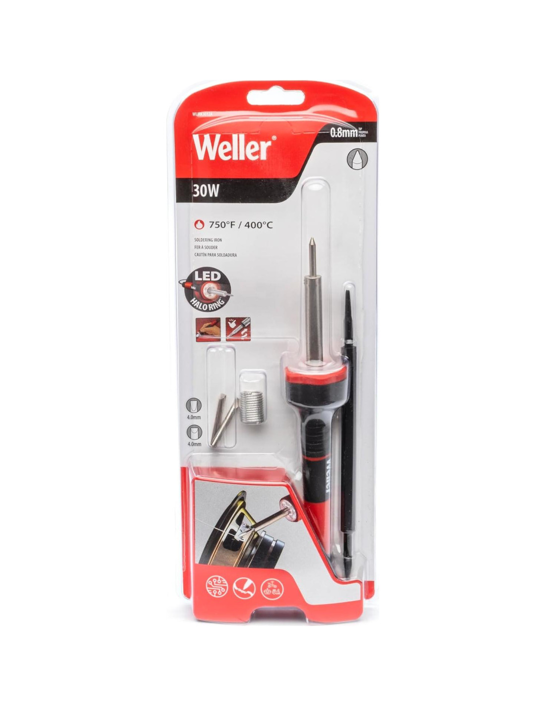 Suelde con destreza y confianza con el soldador de 30W de Weller con Anillo Halo LED. Con su iluminación de 360 grados, mango ergonómico moldeado en forma de lápiz, puntas fáciles de cambiar y soporte de seguridad integrado, es el soldador de alta calidad y versátil perfecto para todas sus necesidades de soldadura.