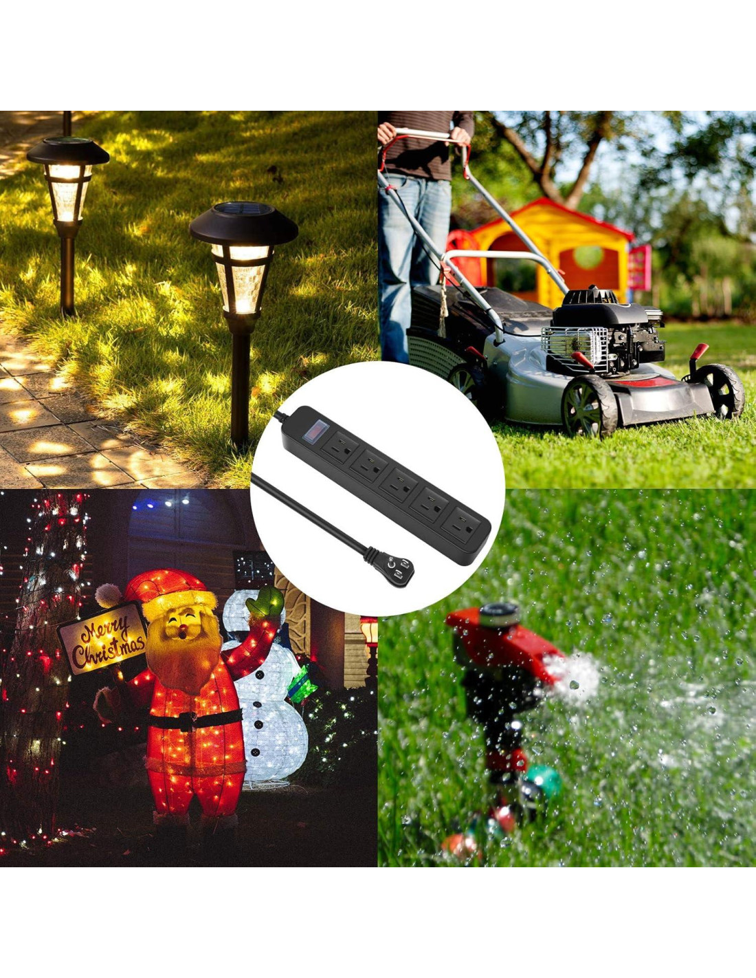 - Regleta de Poder Impermeable negra con 5 salidas - Proporciona 5 salidas impermeables para múltiples unidades de energía y compatible con decoraciones navideñas exteriores de 2 pines y enchufe estándar de 3 pines, regleta de 6ft con enchufe plano.