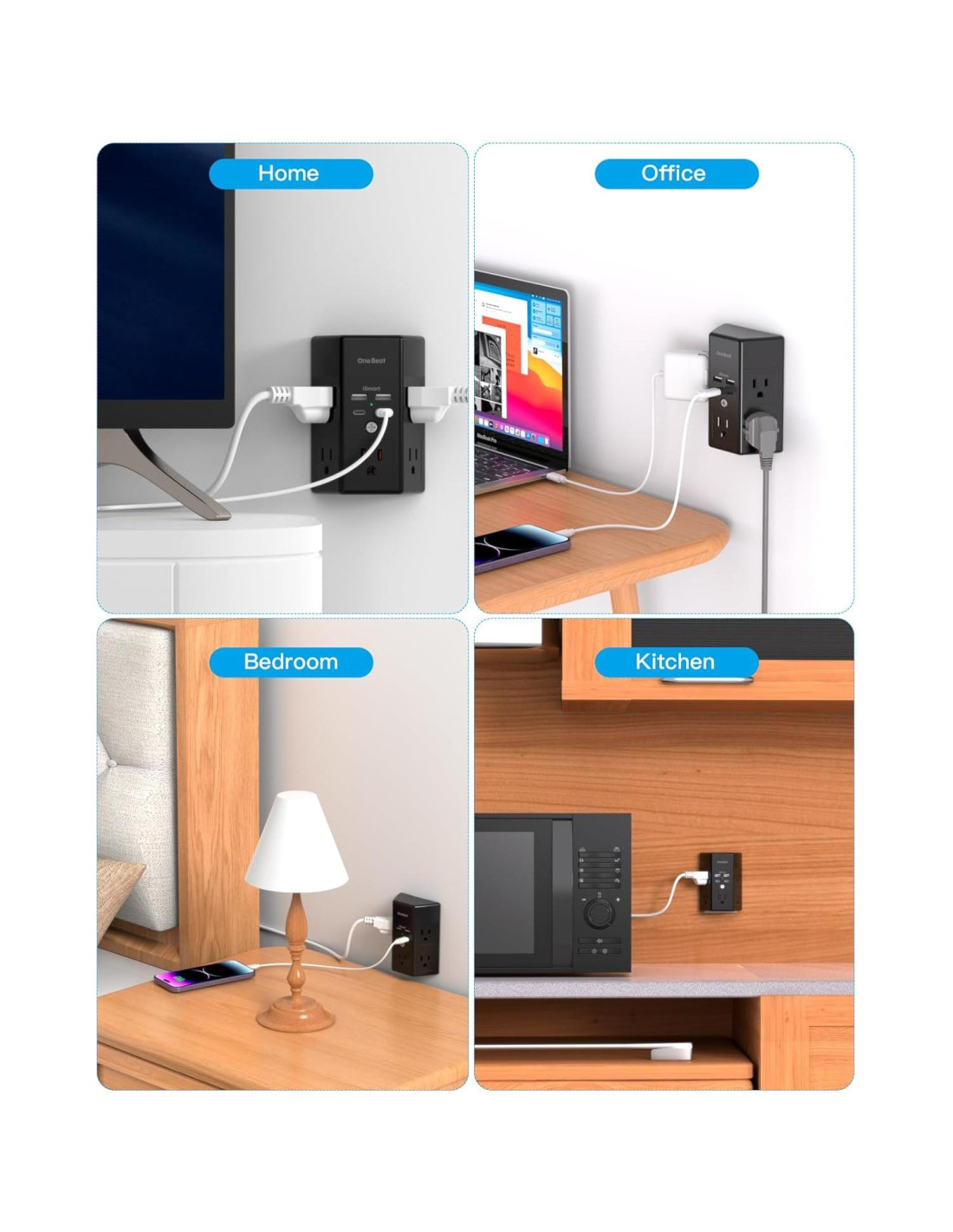 - [Multi Protección de Seguridad] : Certificado por ETL, ROHS y FCC. El expansor de enchufe de pared previene que tus dispositivos eléctricos sufran sobrecorriente/sobre carga/cortocircuito/sobrecalentamiento. Puedes comprar con confianza, con la política de devolución de 30 días y reemplazo de 12 meses de One Beat.