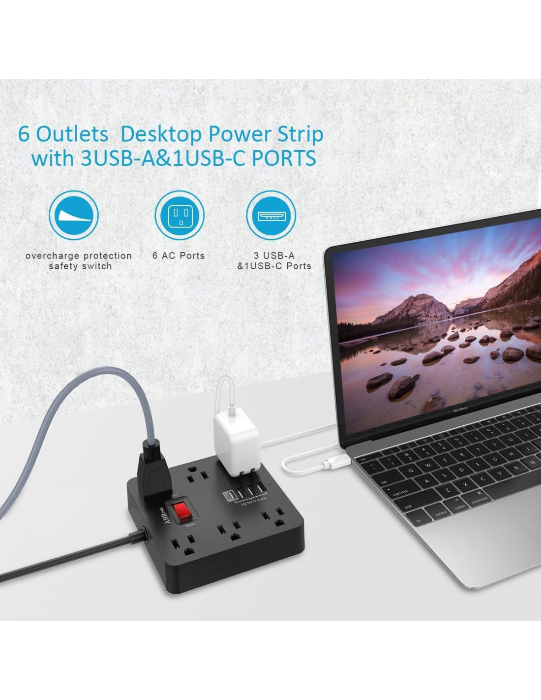 - Salidas de espacio amplio: 6 salidas ampliamente espaciadas, con 1.5 pulgadas (3.81 cm) entre ellas, pueden acomodar 3 adaptadores grandes, cable de extensión de 125V/10A de 5 pies (1.52 metros) con enchufe de 3 clavijas, satisfacen todos sus requisitos de carga para el hogar, oficina, electrodomésticos de cocina y más.