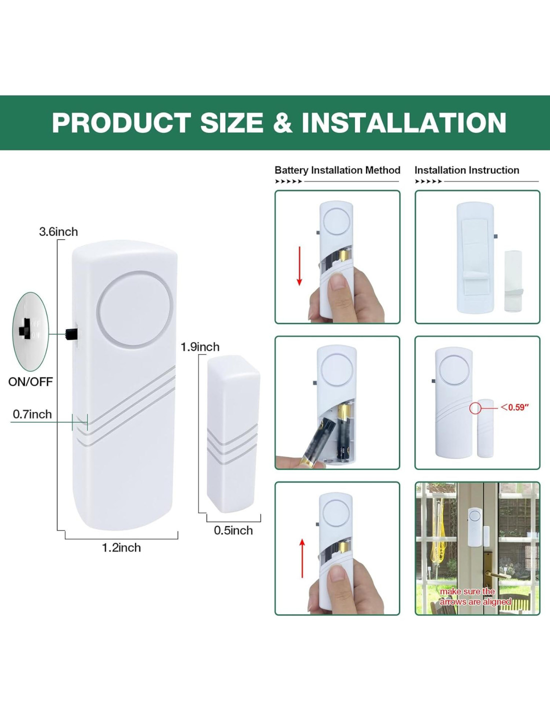 - Adecuado para varios escenarios. Se puede montar fácilmente usando adhesivo. Adecuado para instalación en ventanas y puertas, proporcionando una advertencia de entrada ideal para hogares, apartamentos, casas móviles, oficinas, habitaciones de hotel, garajes y más.
