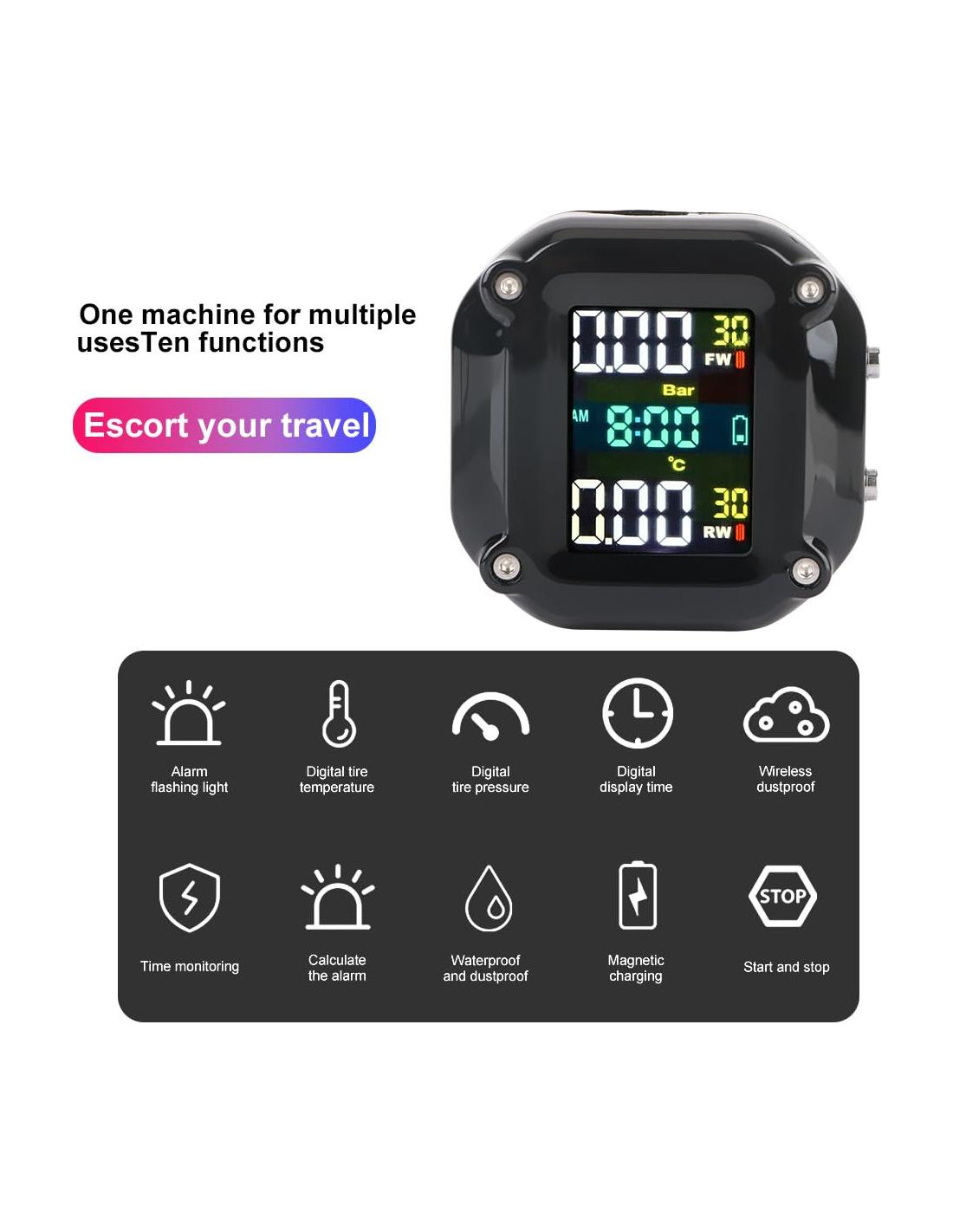 - Múltiples Modos de Alerta: El Sistema de Monitoreo de Presión de Neumáticos de Motocicleta (tpms) LEEPEE monitorea tu condición de neumáticos en tiempo real. Proporciona una variedad de condiciones de alarma para tu automóvil, alarmas de alta y baja presión, alarmas de fuga de aire, alarmas de alta y baja temperatura, advertencias de baja energía y advertencias de No Señal.