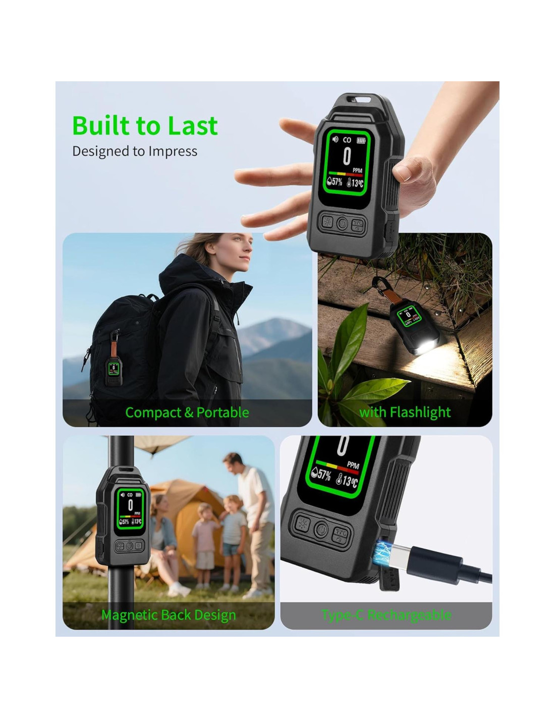 - [Batería Recargable de Gran Capacidad y Potente] Los Detectores de Monóxido de Carbono para Viaje tienen una batería de litio de 2000mAh incorporada con soporte de carga rápida Tipo-C (5V/1A), carga completa en 2-4 horas.