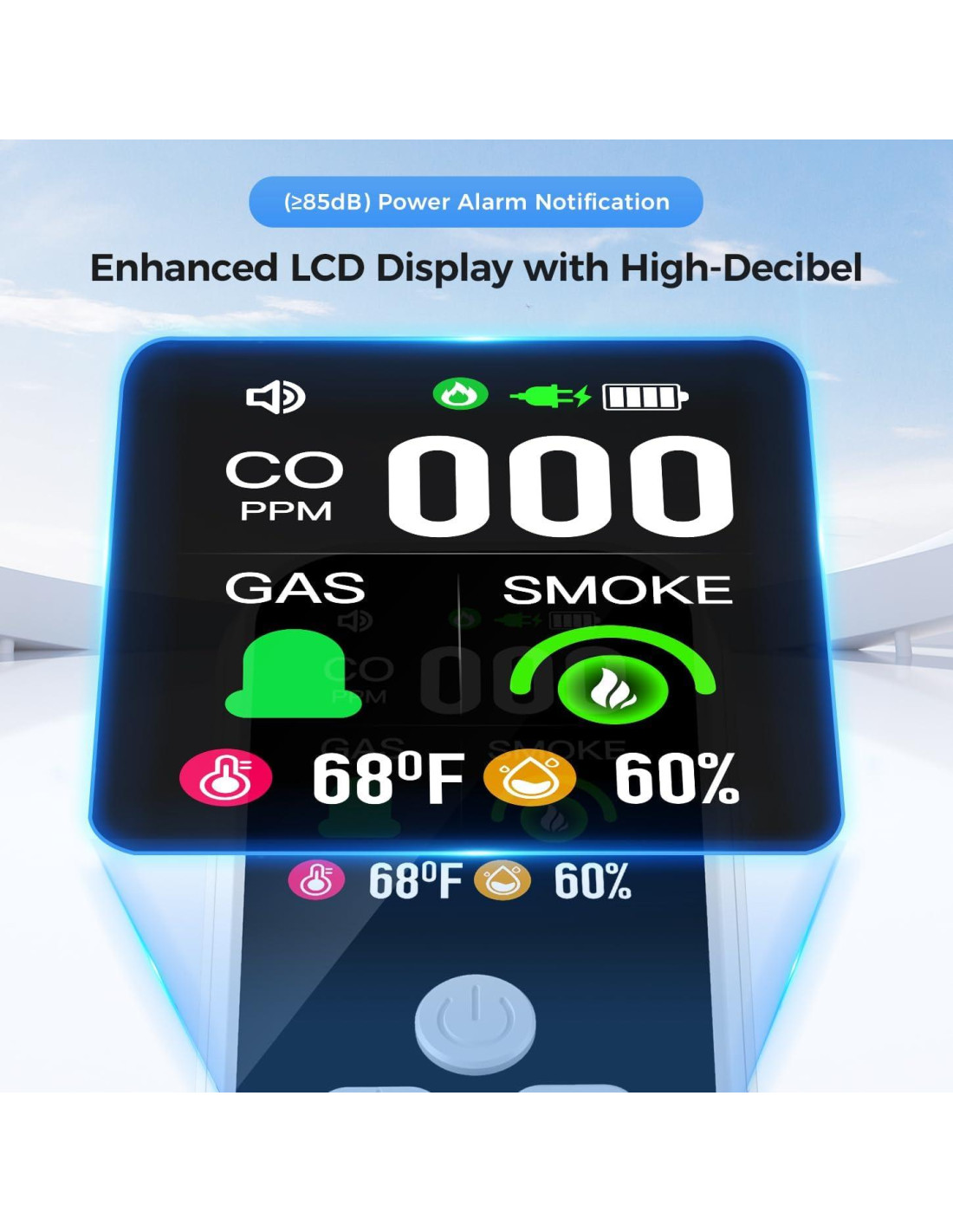 - Seguridad Integral del Entorno de Gas. El detector de humo y monóxido de carbono 5-en-1 de Ixqwr combina una clara pantalla HD con una alarma ruidosa de 85 dB, proporcionando monitoreo en tiempo real de varios niveles de gas. Esto asegura una protección completa para tu hogar y familia, manteniéndote seguro e informado en todo momento.
