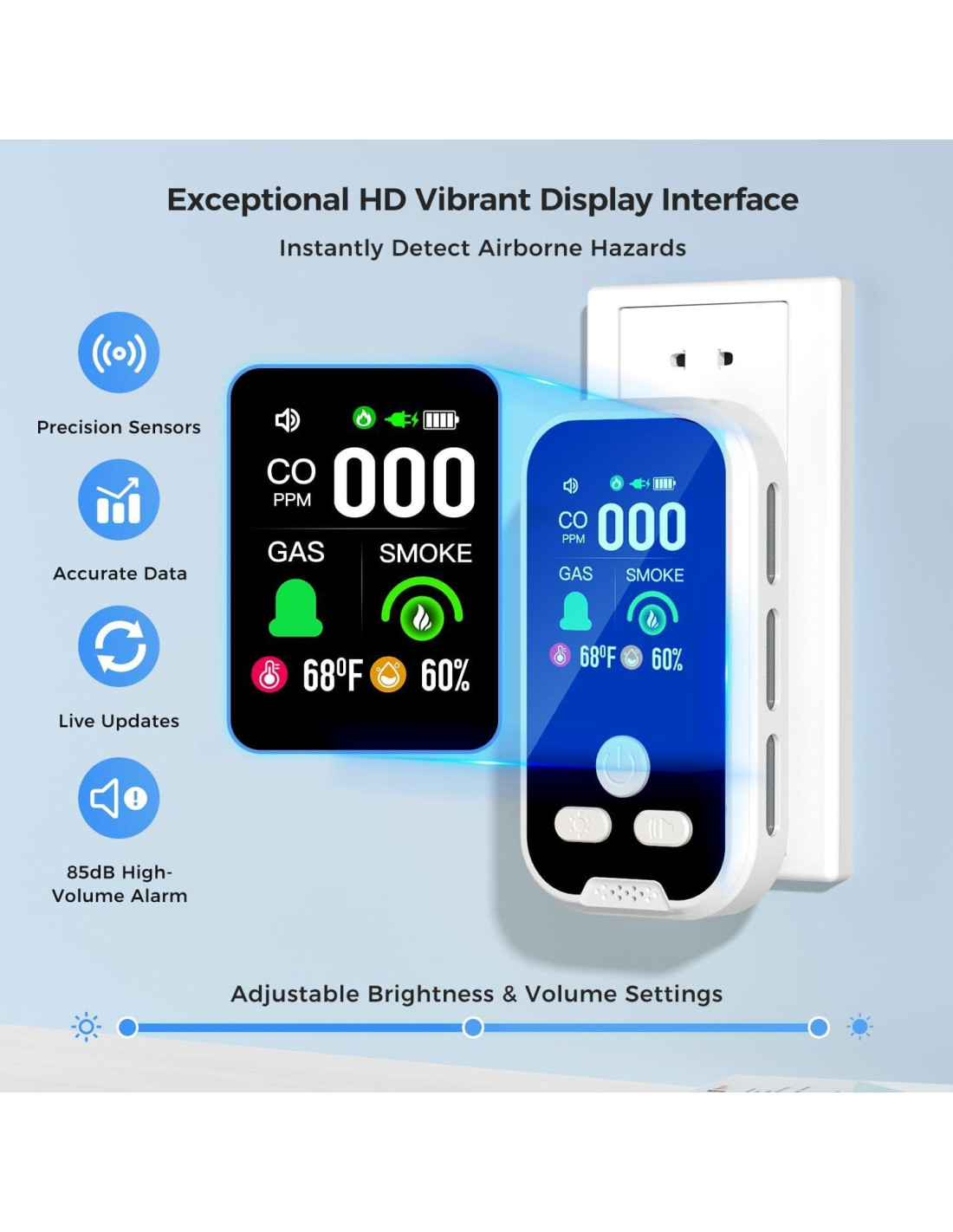 - Fácil de Usar. Nuestro detector de monóxido de carbono enchufable funciona con cualquier toma de corriente estándar de 100V-240V AC, lo que lo hace ideal para usar en dormitorios, cocinas, sótanos o habitaciones de hotel. Su diseño compacto y amigable para viajar es perfecto para viajes de negocios y vacaciones. Simplemente conéctalo para monitoreo las 24 horas, proporcionando protección confiable y tranquilidad dondequiera que estés.