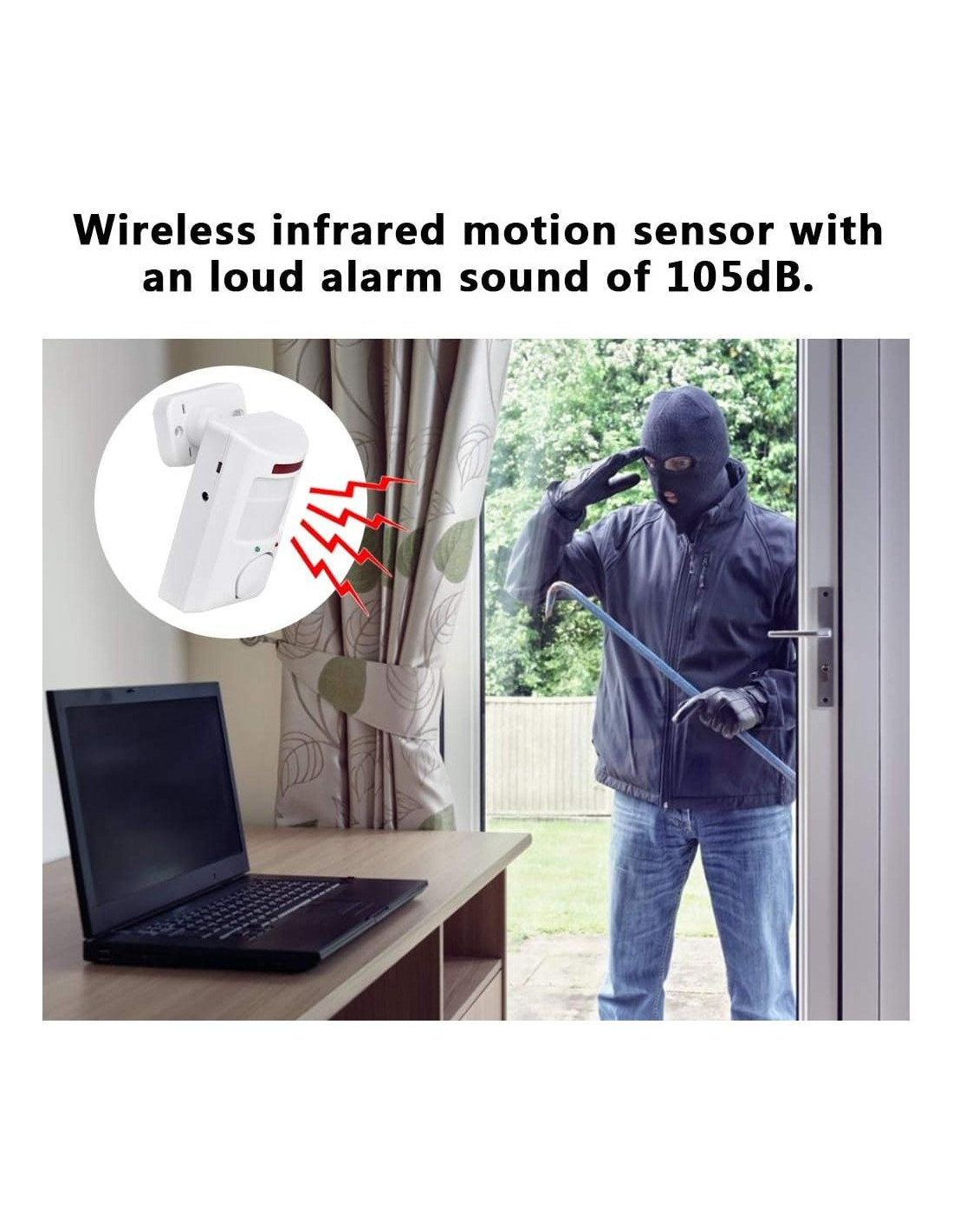 - Alarma Audible: sensor de movimiento infrarrojo con una alarma audible de 105 dB. Cuando la alarma infrarroja remota está sonando, puede. identificación. La identificación del propietario retrasa la alarma, alcanzando una alta tasa de precisión.