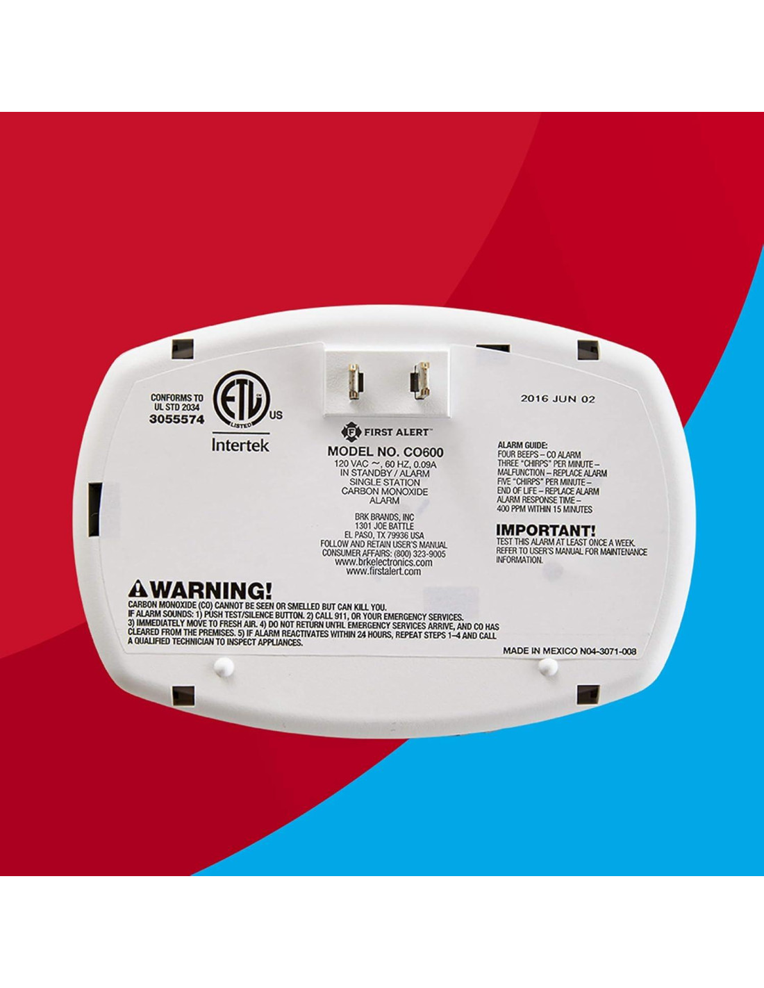 El paquete de 3 detectores de monóxido de carbono CO600 de First Alert ayuda a proteger a su familia en múltiples habitaciones. Las alarmas cuentan con una alarma de 85 decibelios y un sensor electroquímico, y se conectan fácilmente a cualquier toma de corriente estándar sin necesidad de montaje adicional. Un botón silencia cualquier alarma molesta y también prueba las funciones del detector. Y una señal de fin de vida mejora su seguridad al informarle cuándo es el momento de reemplazar la unidad. Mantenga a su familia más segura instalando unidades en múltiples niveles y en cada dormitorio.
