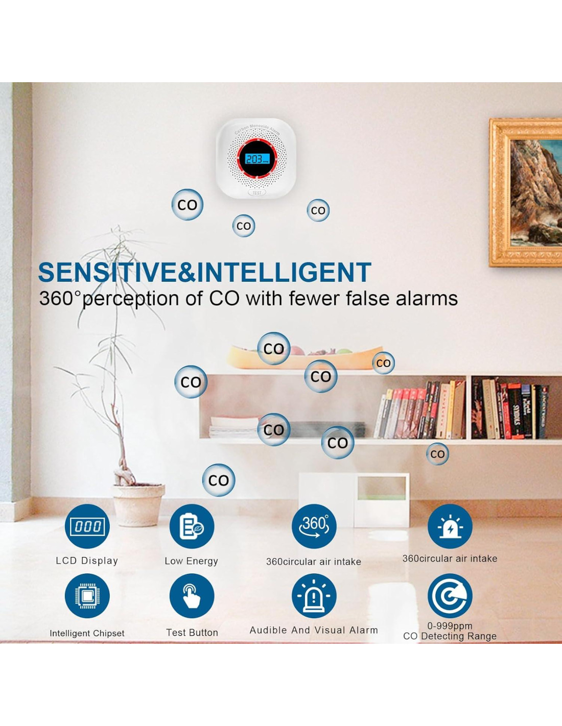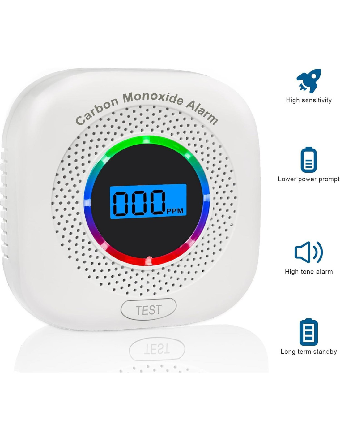 - Alarma Sonora y Visual: Cuando la concentración de CO alcanza el umbral peligroso, se emitirá inmediatamente una alarma de 85dB y la luz LED parpadeará para asegurar recordatorios oportunos